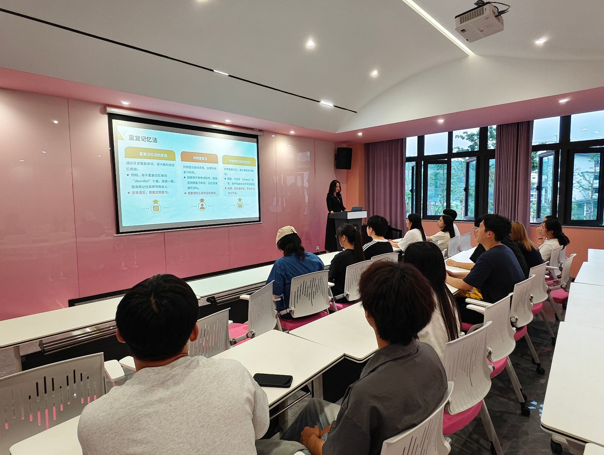 周倩同学主要分享了单词记忆的方法,包括联想记忆法和情境记忆法。联想记忆法是将单词与图像结合,这样能激发大脑想象力,使记忆更生动,适合记忆抽象单词;情境记忆法则是利用影视片段或英语文章构建记忆场景。王文艺同学则是强调了坚持的重要性:“刚开始背单词时,我也觉得枯燥,但把背单词拆解成‘每天15分钟’的小目标,逐渐形成习惯。当连续打卡天数突破10天、20天时,那种成就感会推着你继续前进。现在,我不仅词汇量显著提升,更培养了坚持的毅力。”