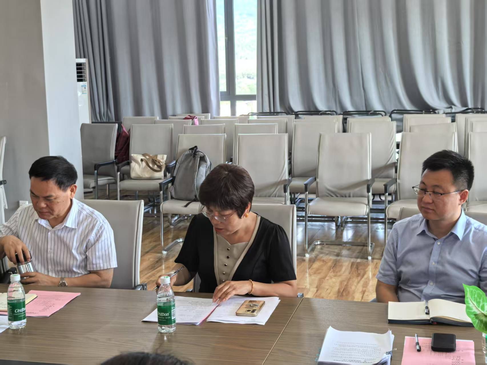 汇报结束后,进入材料检查环节。梁校助对学院合格评估材料进行细致审查,过程中不断提出建议,向院长、林院长等学院领导及时予以应答,并深入交流评估材料相关内容。