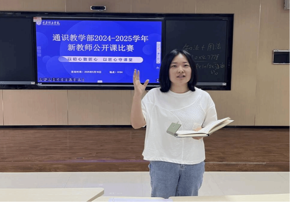 为了深入贯彻学校“教育教学三提三创”主题年的工作要求,提升教学质量、提升教师素养、提升学生能力,创新教学方法、创新课程设计、创新评价体系,为即将到来的教学评估工作做足准备,2025年5月16日,重庆移通学院合川校区通识教学部在9104教室成功举办了“以初心致匠心,以匠心守课堂”为主题的新教师公开课比赛与学术道德活动月活动。此次活动由通识教学部主任皮若兰、副主任李娇、各教研室主任以及骨干教师代表作为评委,通识教学部全体教师到场观摩学习,王雪源老师主持。