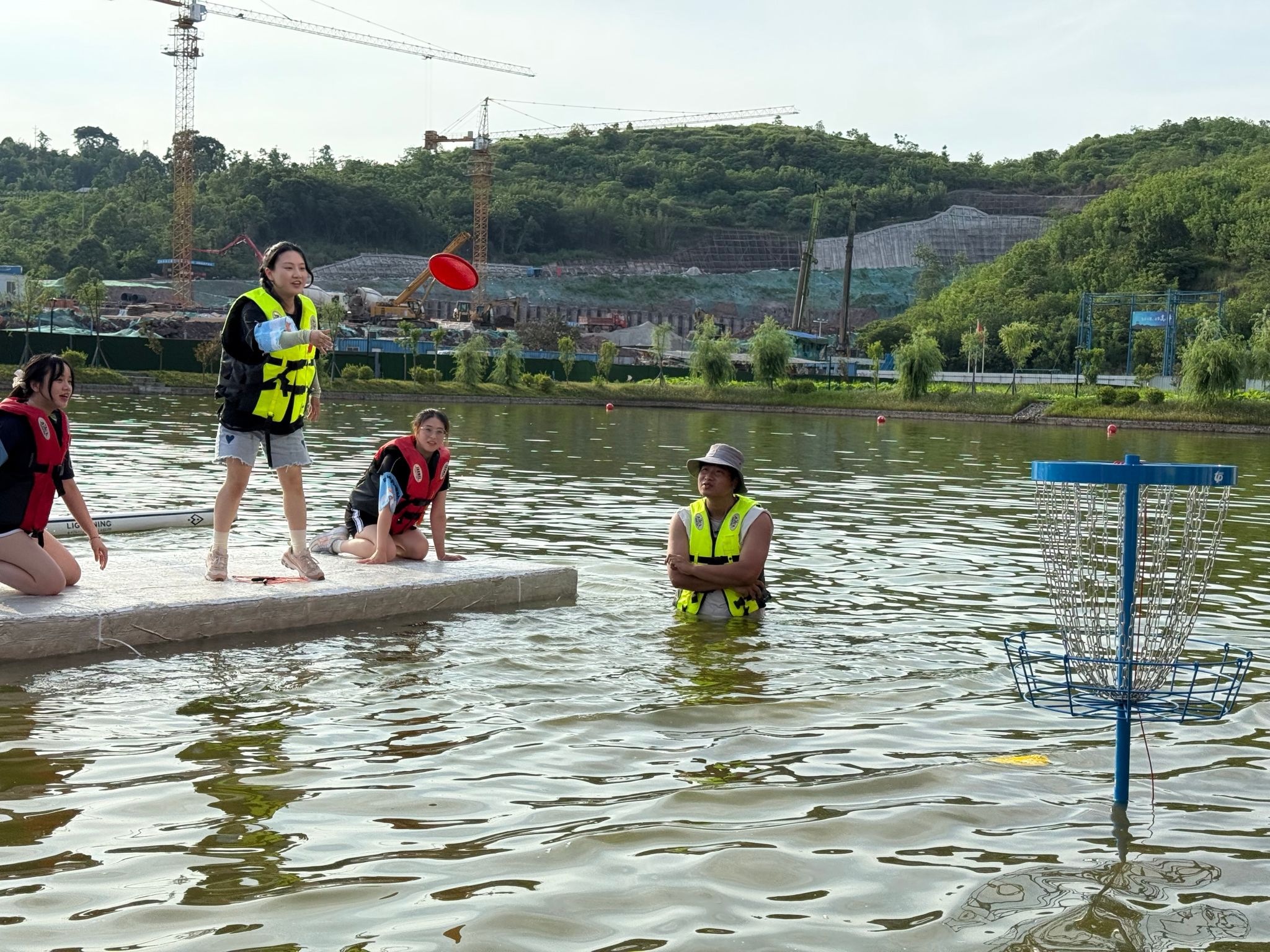 最具挑战性的 “巅峰考验” 将比赛推向高潮。各队需全员完成每人10次的接力跳绳后,依次投掷飞盘入靶。跳绳时的默契配合、投掷时的屏息凝神,展现出团队从磨合到协作的完整蜕变。比赛不仅让选手们体验了水上运动的乐趣,更深刻理解了 “信任与协作” 的意义。经过紧张刺激的比赛,【超级队】与【勇夺第一】并列冠军,【小斑鸠】斩获季军。