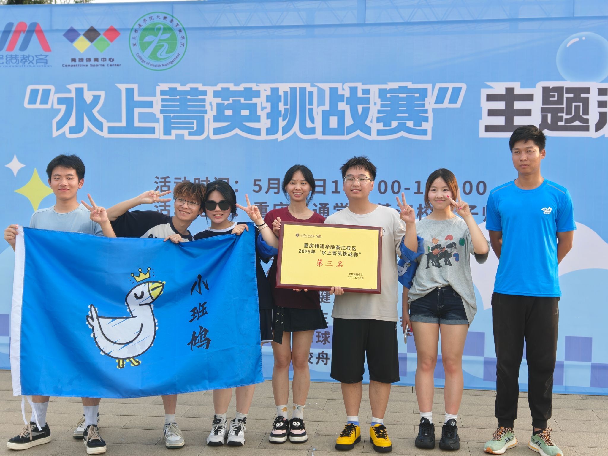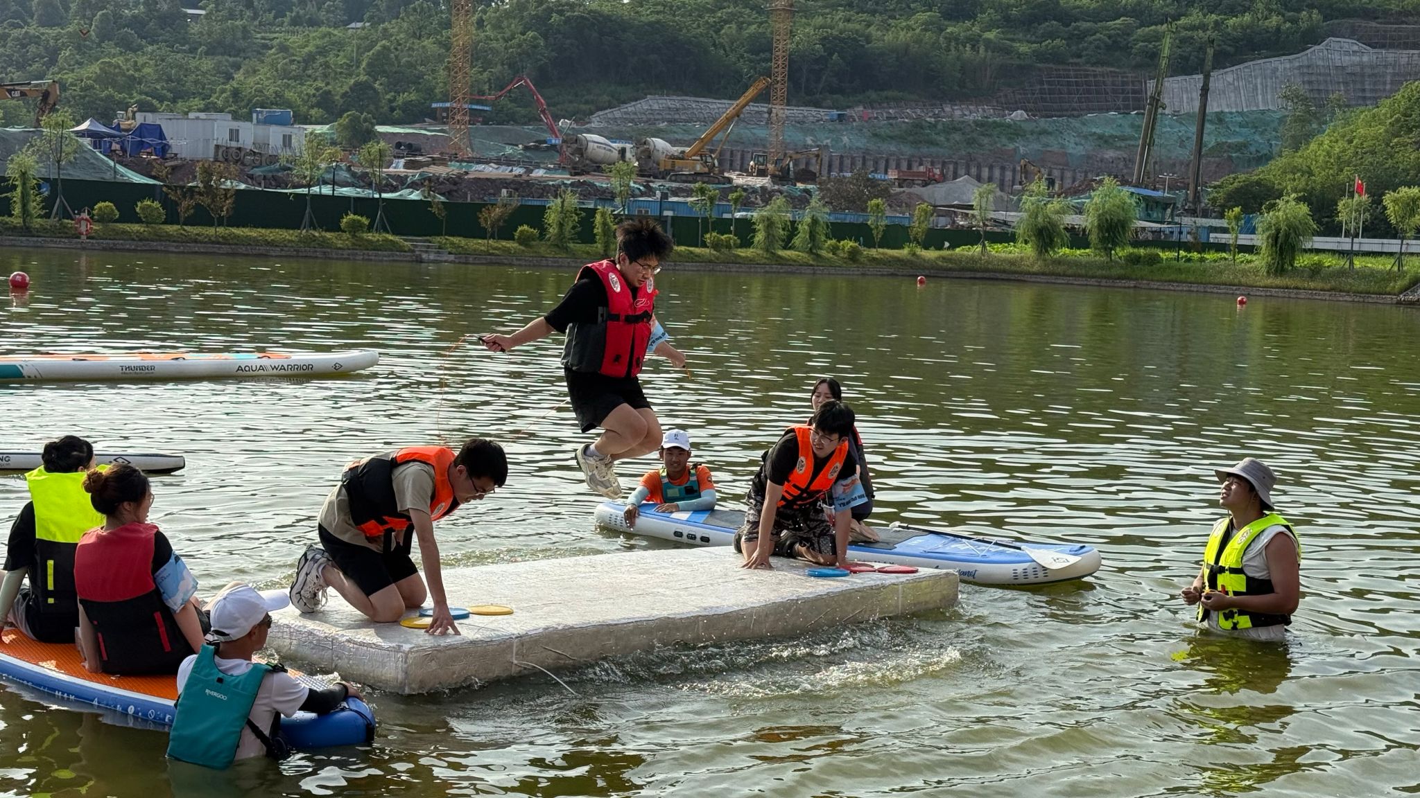 夏季的到来使得水上运动成为学生们热衷的休闲娱乐方式之一,结合我校拥有的水域资源,在子师湖开展“水上菁英挑战赛”主题活动。2025年5 月 21 日16:00,重庆移通学院綦江校区子师湖畔呐喊声此起彼伏,“水上菁英挑战赛” 火热开赛。来自各学院的8支队伍共 48 名选手劈波斩浪,在三大水上项目中展开激烈角逐。