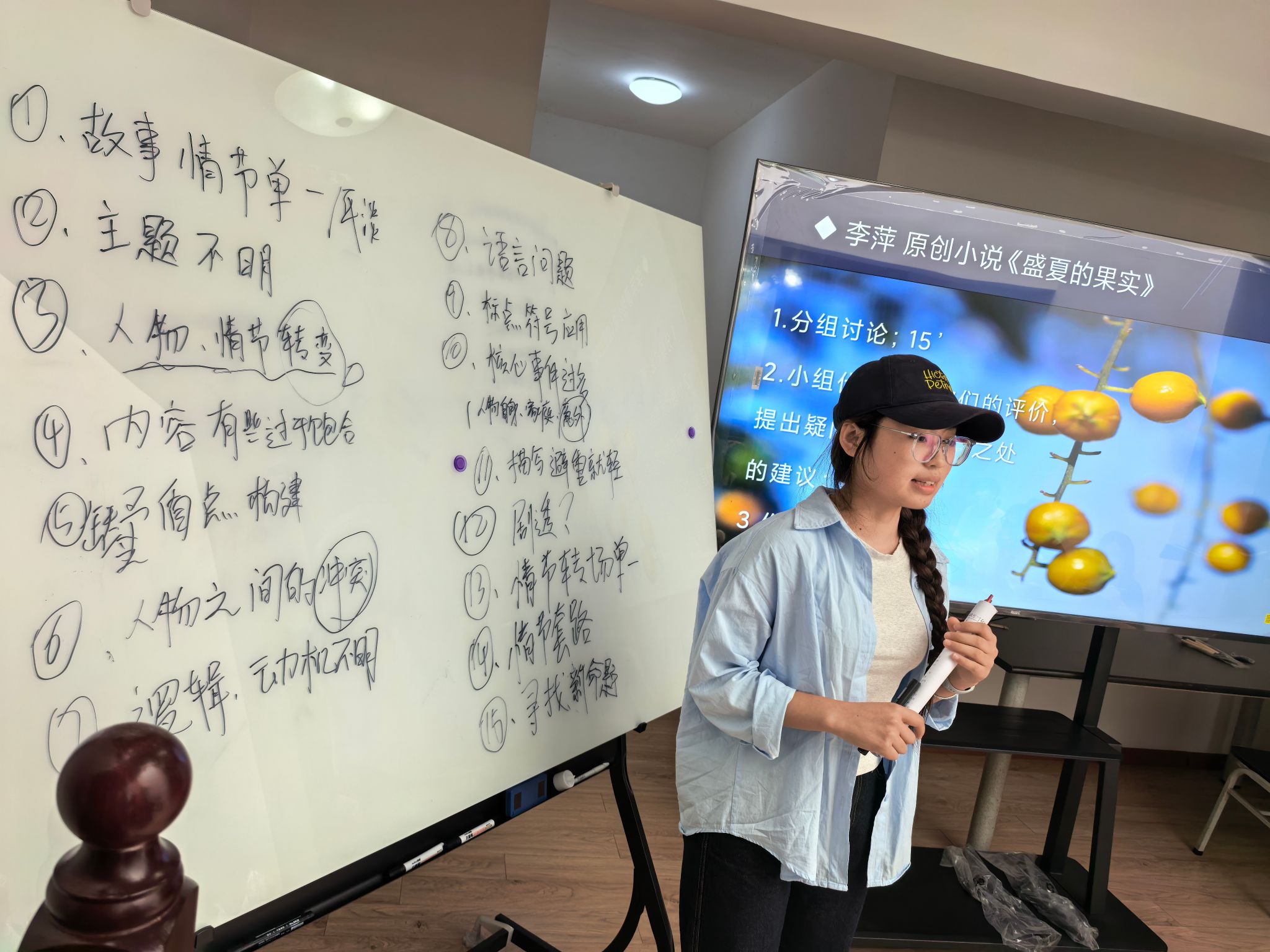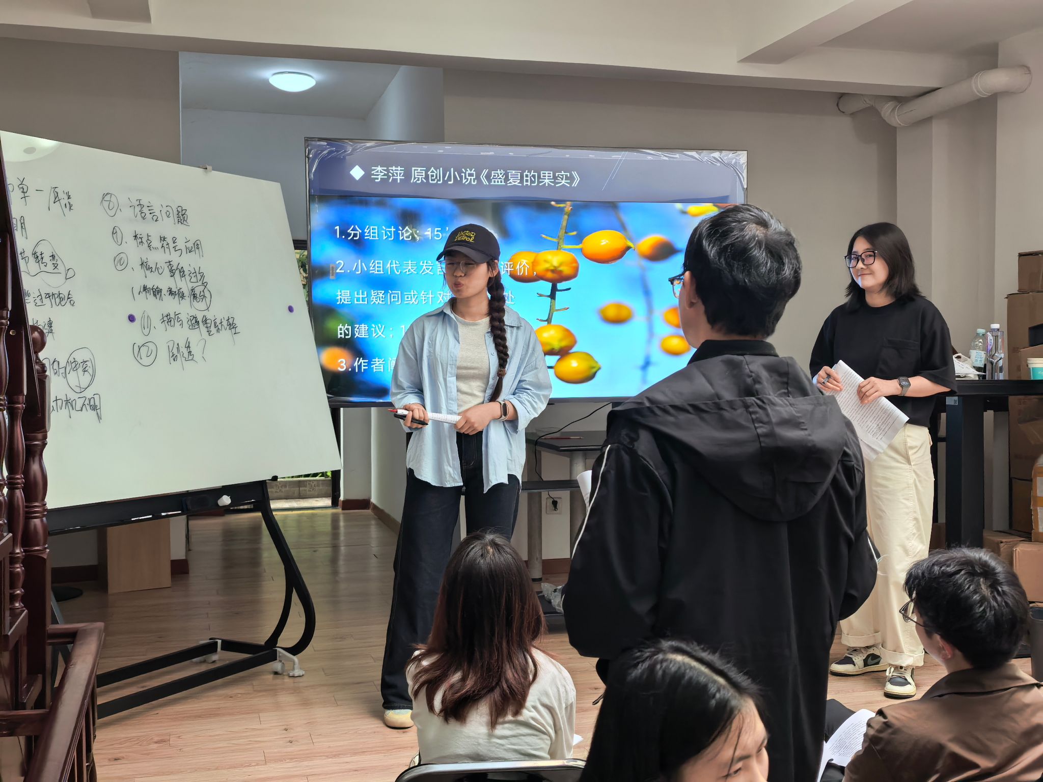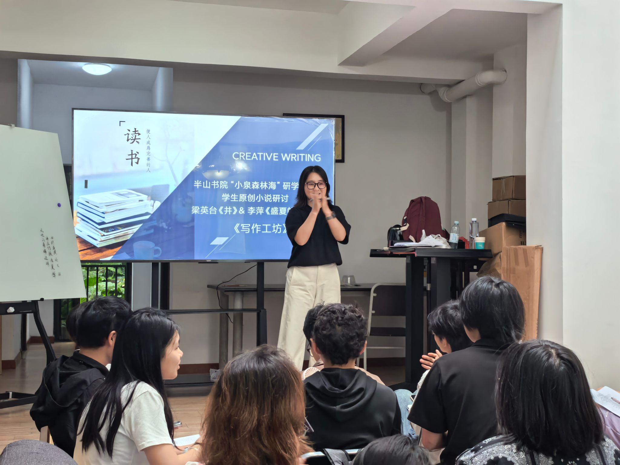 次日清晨,清新的空气弥漫在半山书院的每一个角落。小说工坊的马静老师组织同学们对李萍同学的原创小说《盛夏的果实》和梁英台同学的《井》进行点评。同学们围坐在宽敞明亮的苑海楼4号楼里,各抒己见。有的同学从小说的情节架构入手,分析其起承转合是否合理;有的同学着眼于人物塑造,探讨角色的性格特点和成长轨迹;还有的同学对语言表达进行细致剖析,提出了许多富有建设性的意见。小说工坊与非虚构工坊同学们思维的火花在交流中不断碰撞,大家在激烈的讨论中对小说创作有了更深刻、更全面的理解。