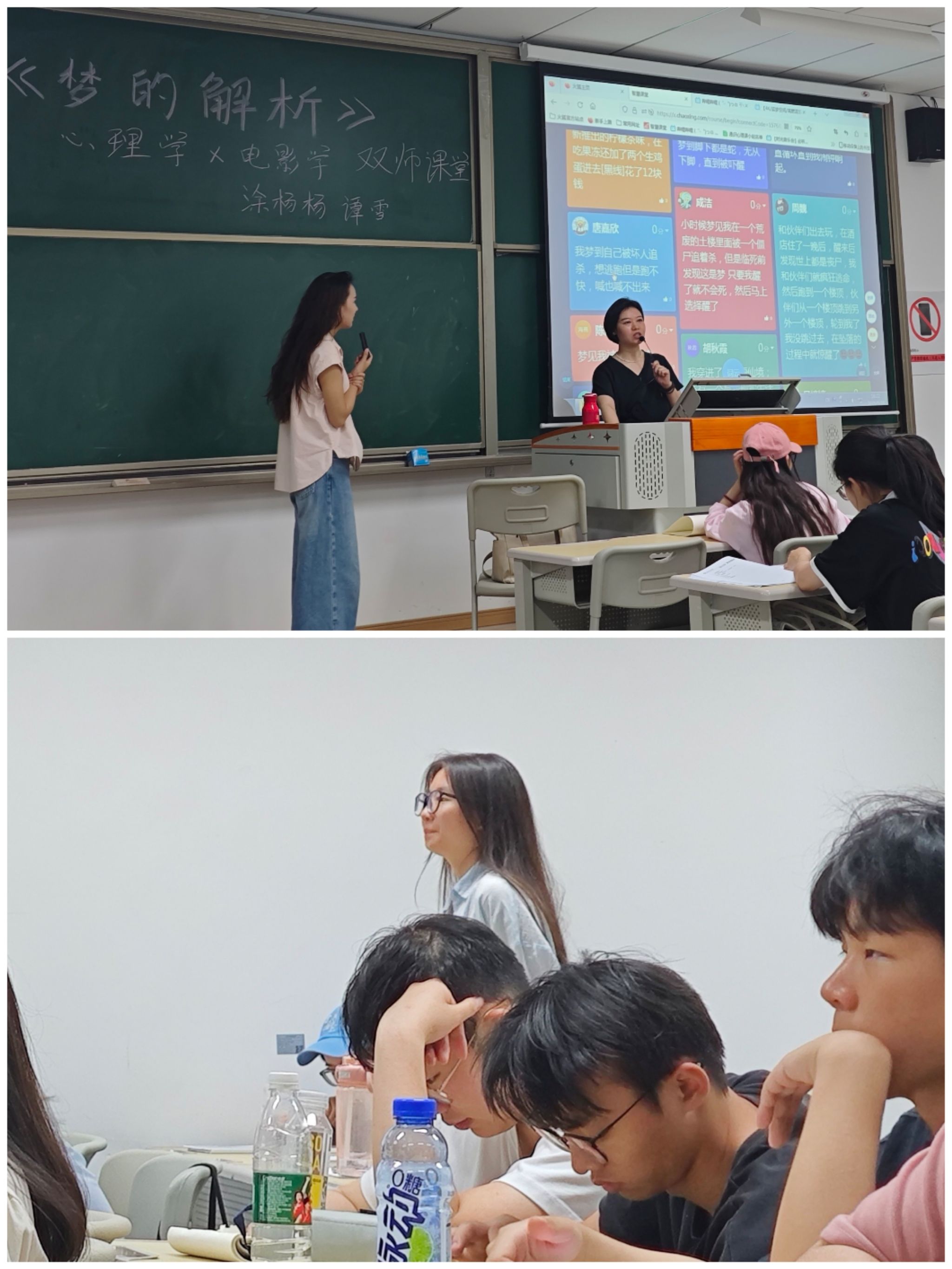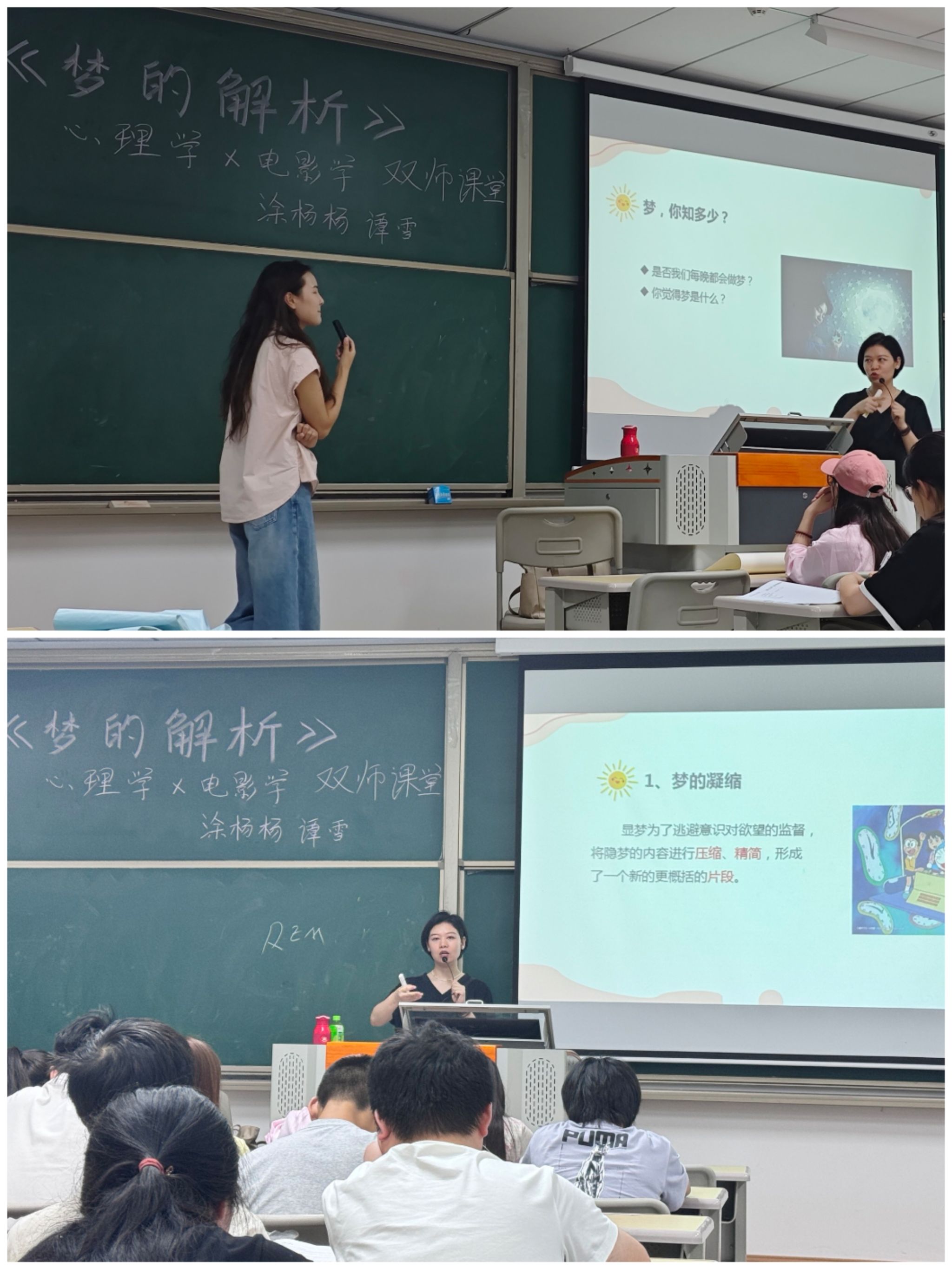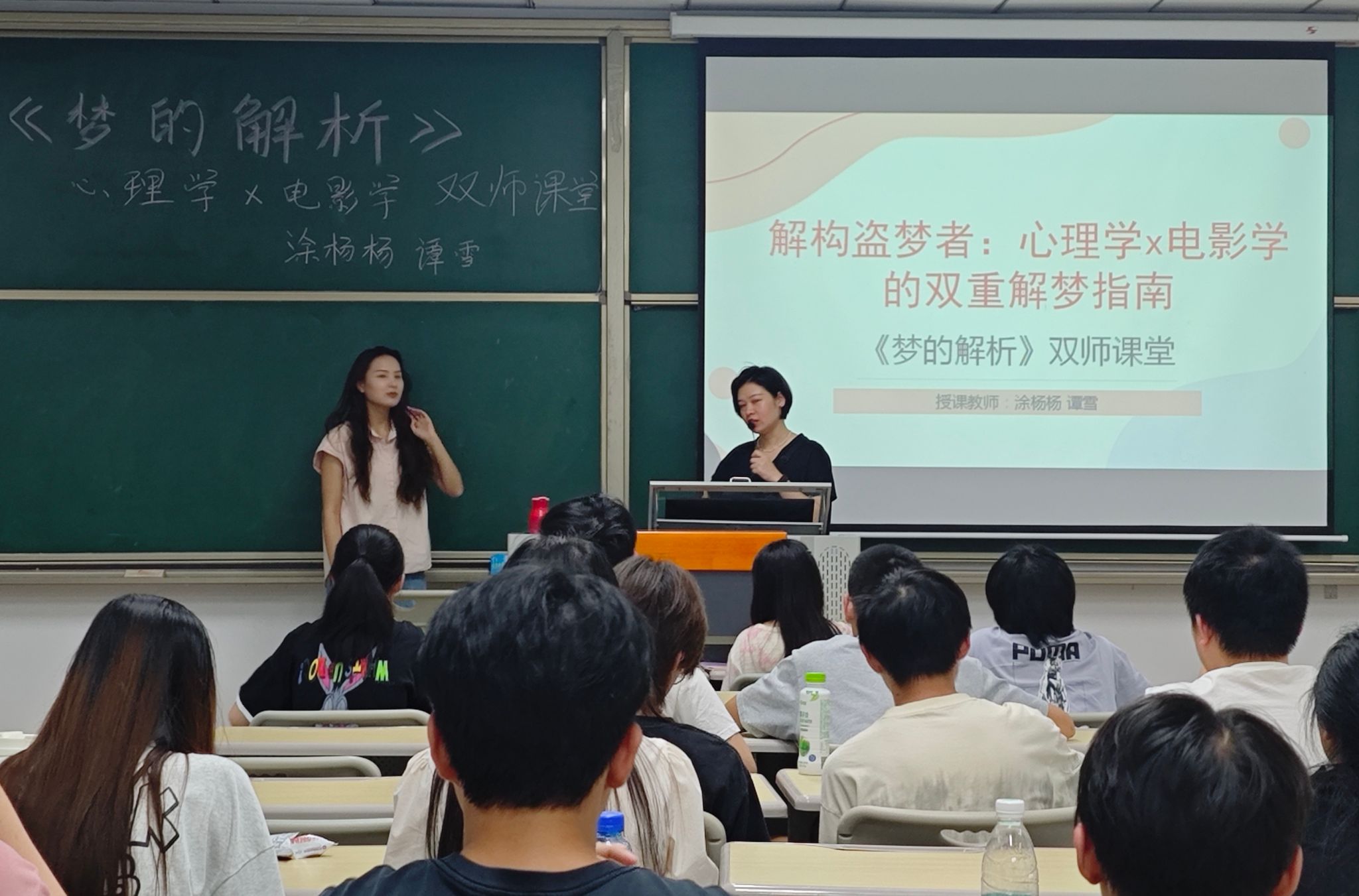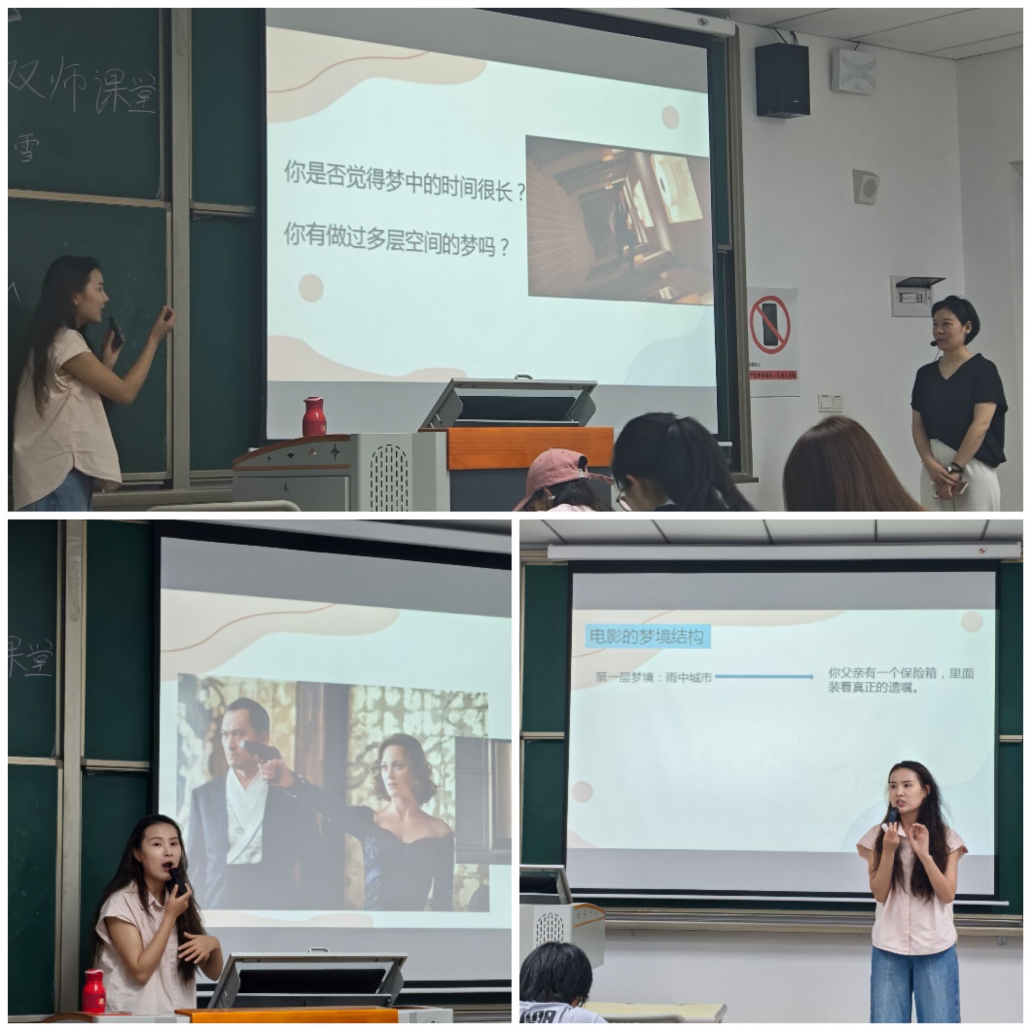 为探索通识教育新路径,培养学生多元视角分析能力,5月20日下午,通识教学部《人格心理学》主讲教师涂杨杨联合电影评论中心教师谭雪,在行者楼103教室开展双师授课。课程以弗洛伊德“梦的解析”为理论基础,以诺兰经典电影《盗梦空间》为艺术载体,融合心理学理论与影视艺术分析,带领学生开启了一场跨学科对话。