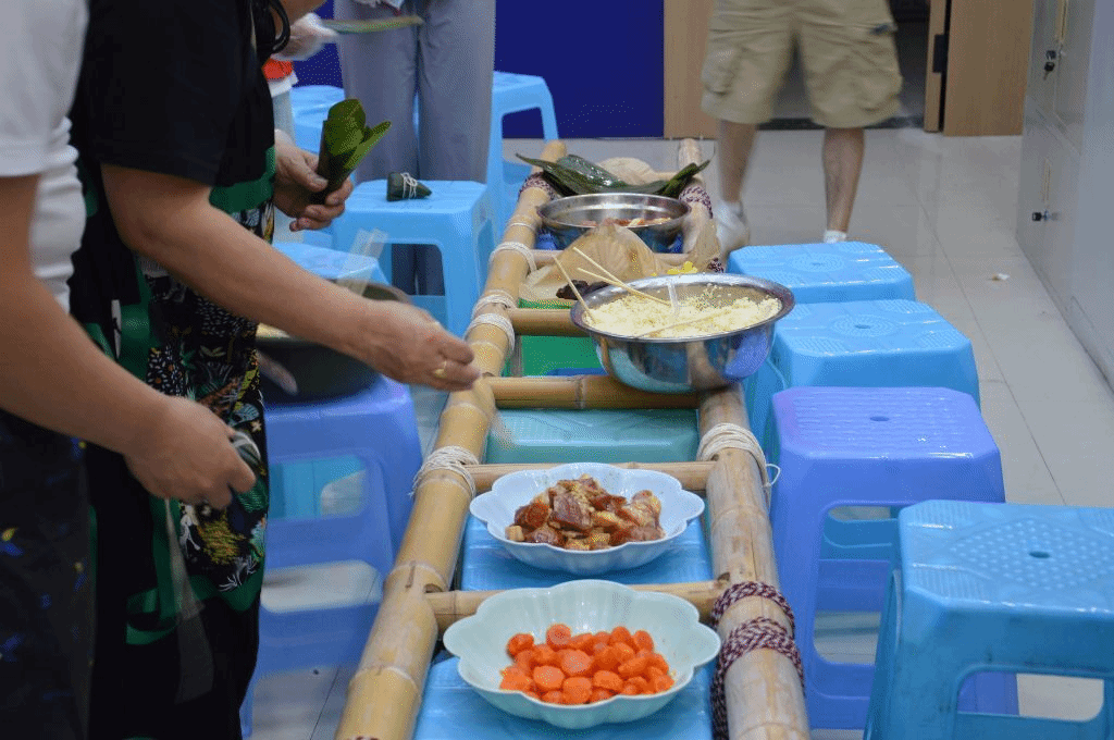 活动当天,阳光明媚,志愿者们满怀热情地抵达渝康家园,与社区工作老师一同投入到活动现场的布置中。他们精心摆放着制作粽子和青团所需的各类材料,包括糯米、 粽叶、豆沙、咸蛋黄、五花肉等,确保一切准备就绪,为活动的顺利开展营造出温馨、欢快的氛围,让每一位参与者都能在舒适的环境中开启这场充满爱的活动。