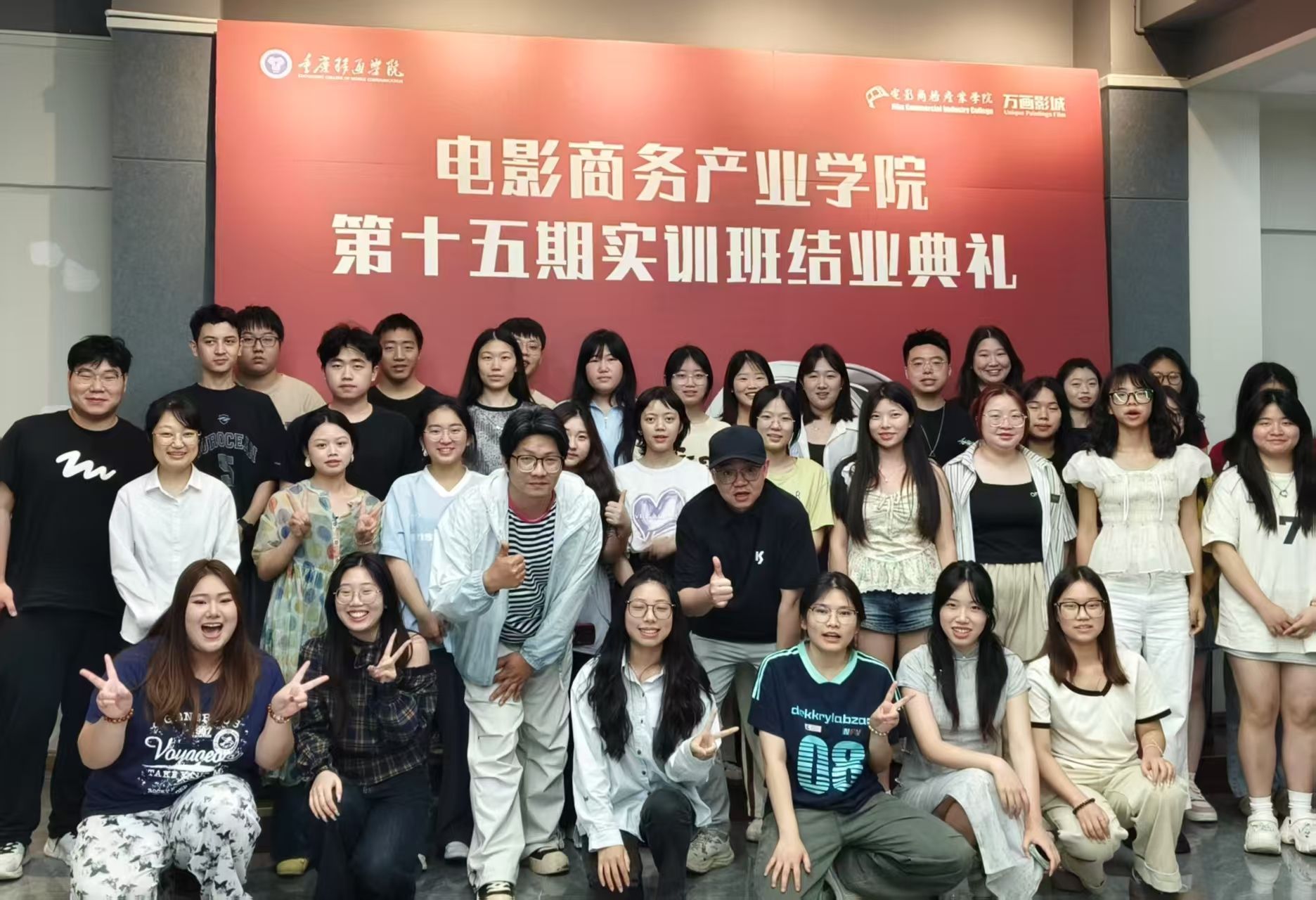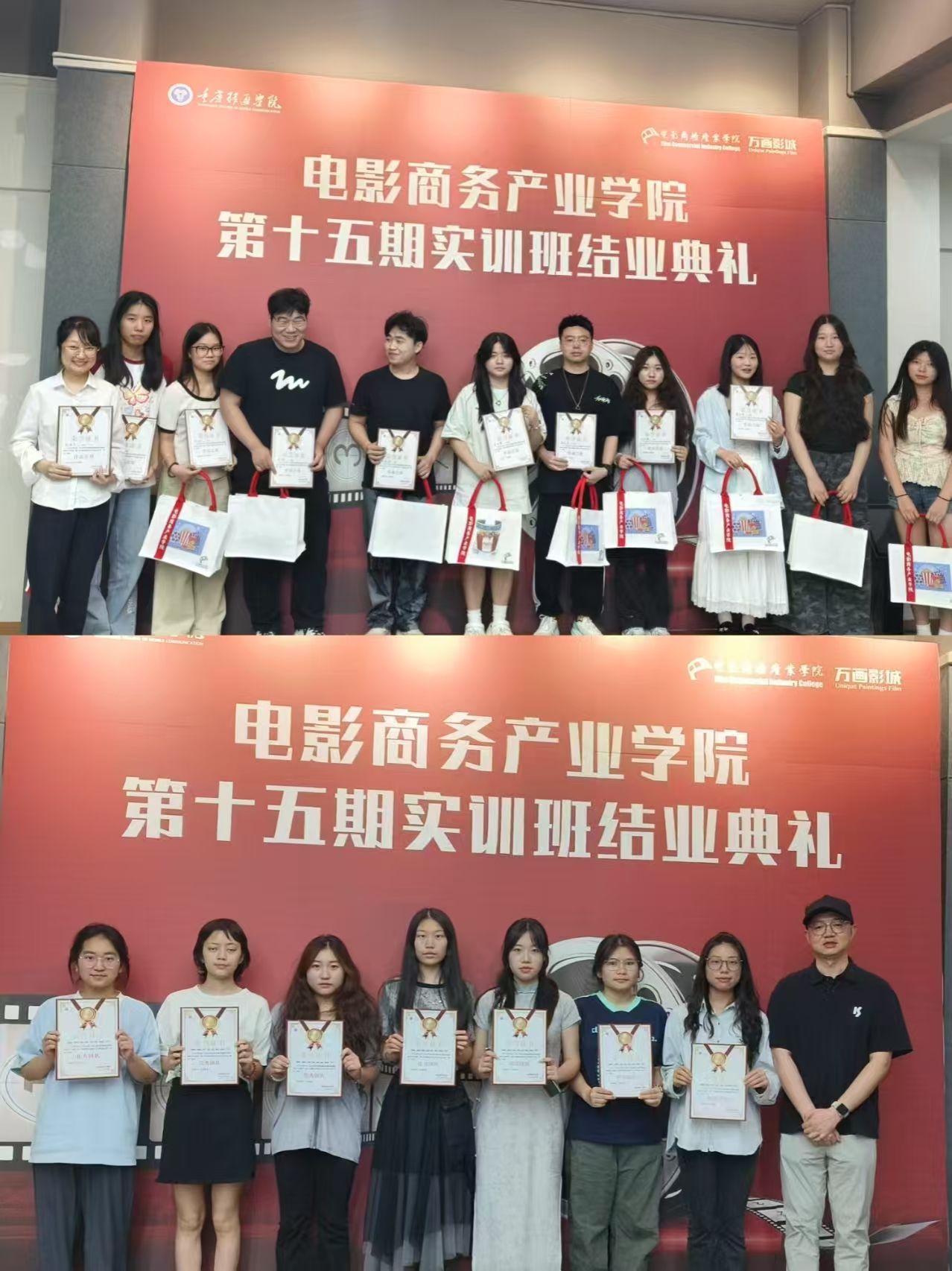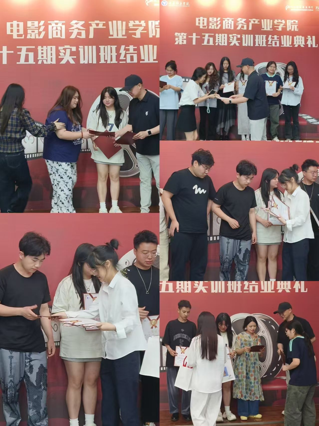 最后,全体与会人员一同合影留念,镜头定格下这充满意义的时刻,大家的笑容中既有结业的喜悦,也有对未来的憧憬。本次结业典礼不仅是对学员们学习成果的总结与肯定,更是他们迈向电影商务产业的新起点。电影商务产业学院也将以此为契机,不断优化教学模式,深化产教融合,为电影产业培养更多高素质、创新型人才,助力中国电影商务产业蓬勃发展。
