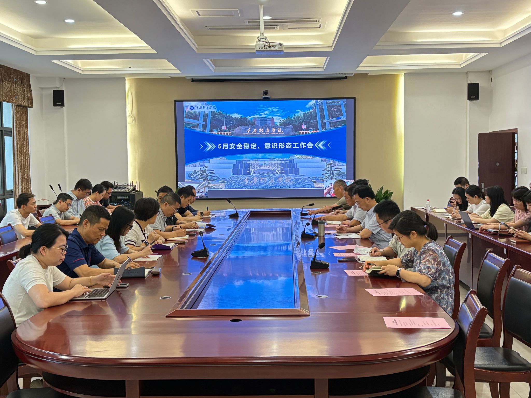 为落实上级部署、总结研判并规划校园安全稳定工作,营造平安育人环境,5月28日,重庆移通学院由校长助理尹浩亮主持召开5月安全稳定、意识形态工作专题会议,校长吕翊等在家校领导、各职能部门及二级学院负责人、学工系统负责人和安稳办全体成员参会。