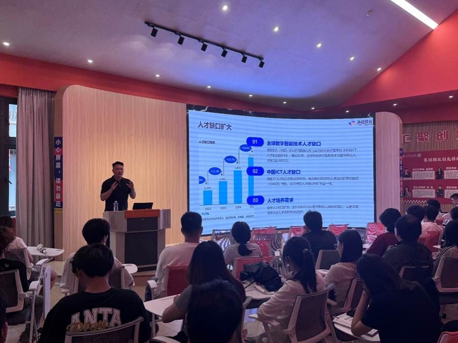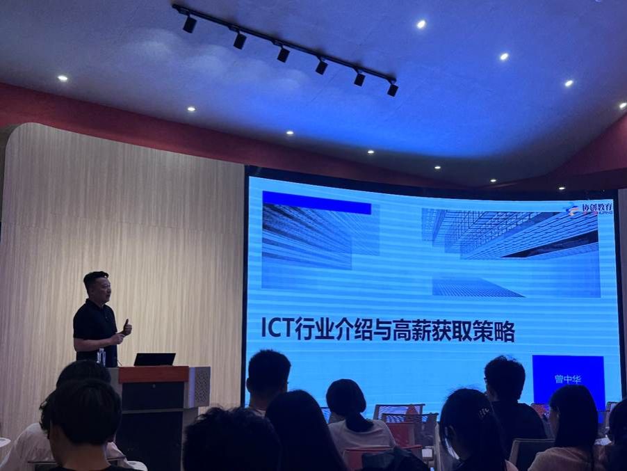 讲座伊始,曾中华老师围绕ICT(信息通信技术)领域头部企业的发展现状与就业需求进行了深入介绍。他结合自身工作经历和行业数据,系统分析了当前ICT大厂的发展格局、人才需求特点及未来发展趋势,帮助学生清晰认识企业对技术人才的能力要求和成长路径。
