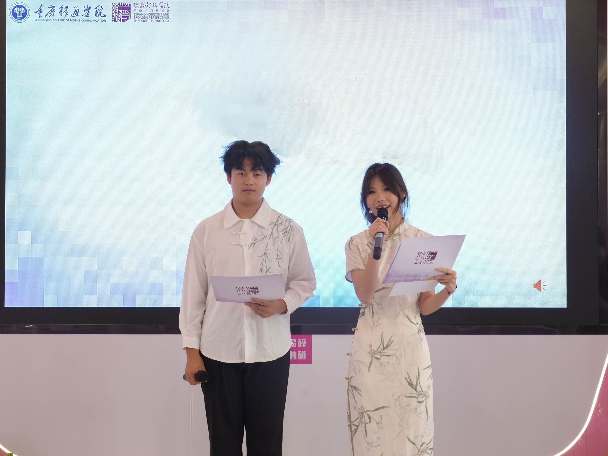本次比赛邀请重庆移通学院学生处副处长唐尚静、重庆移通学院就创中心副主任毛敏、戏剧影视学院院长王芳、信息安全学院学工副院长尹金维、戏剧影视学院学工办主任曾玉娇担任评委,学院6名辅导员参加比赛,70余名学生观众现场参与,大赛由2023级戏娃杨阔、席瑾怡主持。