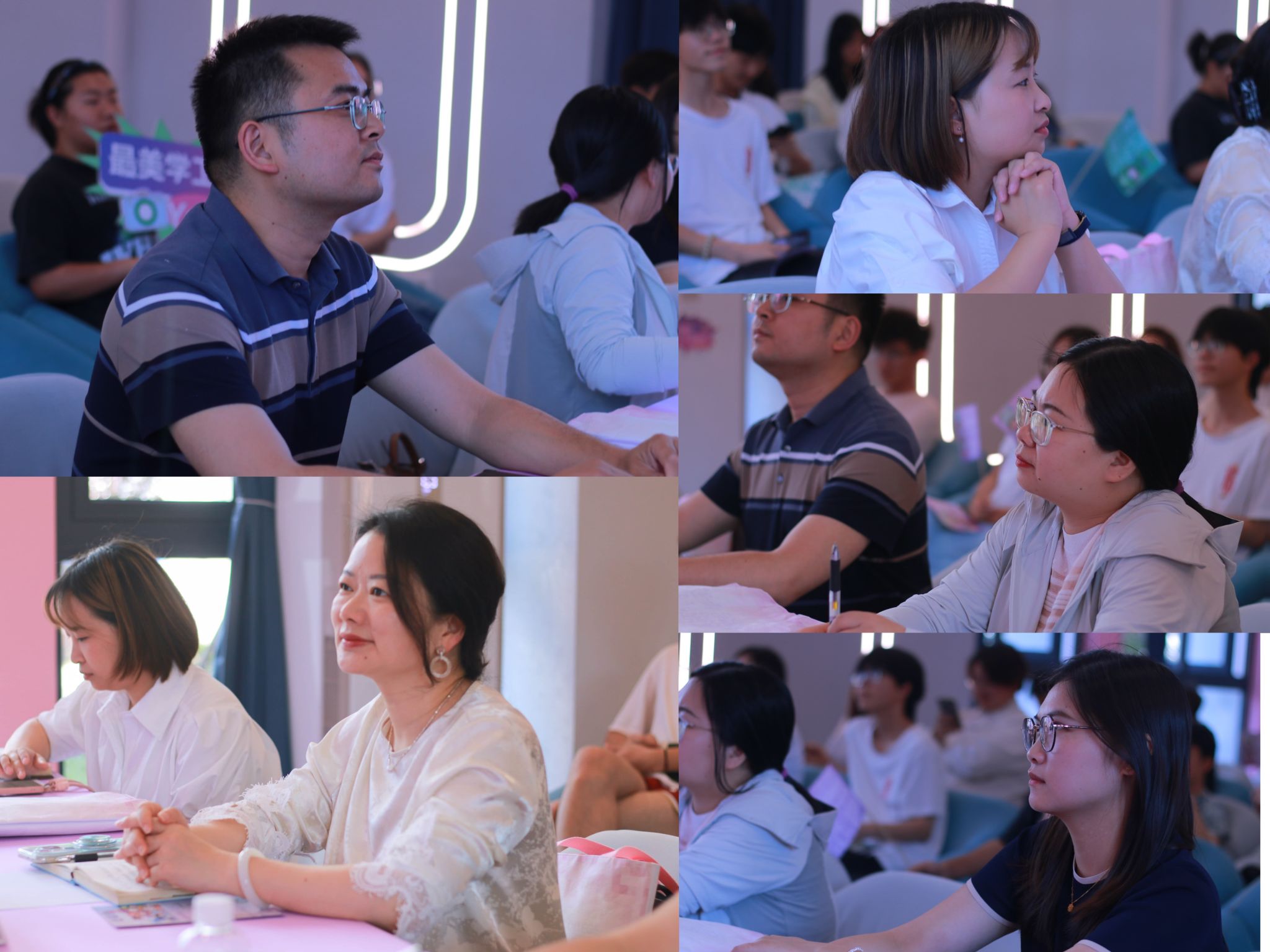李梦雪老师化身园丁,娓娓道来陪伴 “小花” 从破土萌芽到绚烂绽放的历程,爱与鼓励是滋养生命的甘霖;廖炳屹老师讲述了自己见证问题学生破茧成蝶、化为舞台主角的故事;周江琴老师则分享了腼腆 “低头少年”打开自己,走出宿舍,走向完满,蜕变为舞台之星的逆袭故事。赵天溢老师则化作心灵领航人,巧妙化解学生的不满情绪,用温暖与智慧点亮学生的青春之光。这些故事里,有欢笑与泪水交织的酸甜苦辣,每一个细节都饱含师生间的深厚情谊。