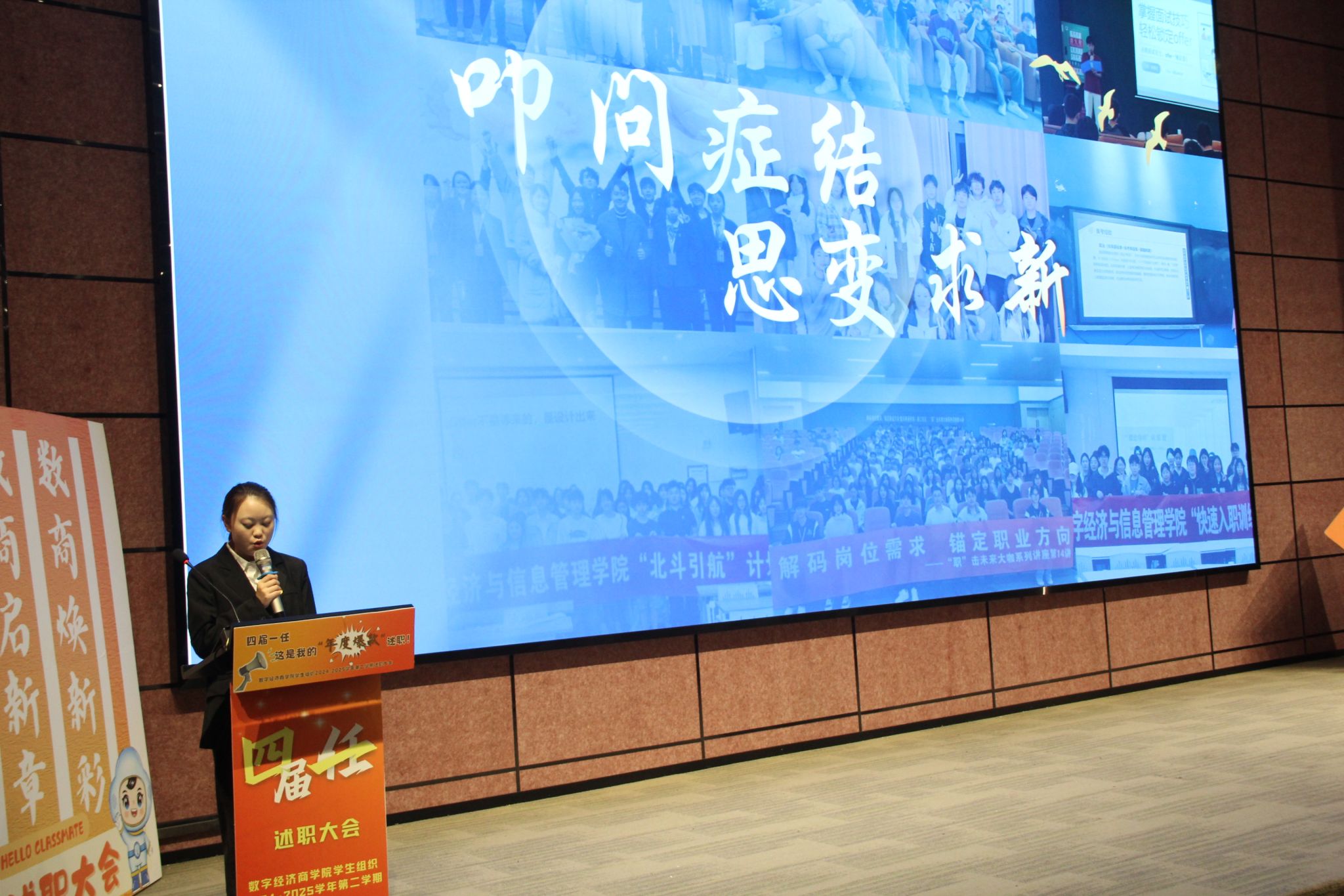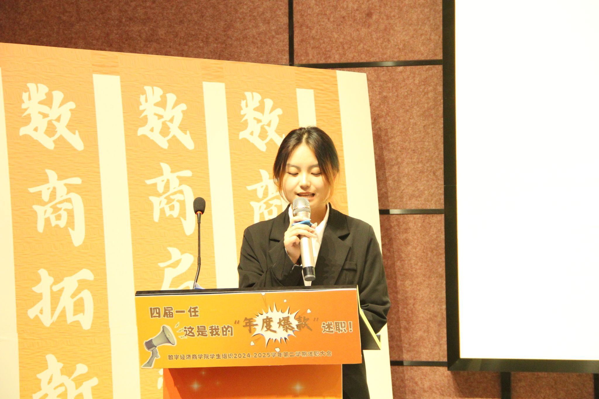 志存高远铭初心,步履不停笃于行。本次述职大会的成功召开,不仅是对过去一学期学院工作的全面梳理与总结,更为未来工作的高质量发展明确了方向。站在新的起点,数字经济商学院团总支学生会将秉承“敦品励学,明理精业”的院训精神,用实际行动践行“全心全意为同学服务”的初心,继续满怀着热情与积极的态度,无畏迎接新挑战,奋力推动学院发展迈向新高度!