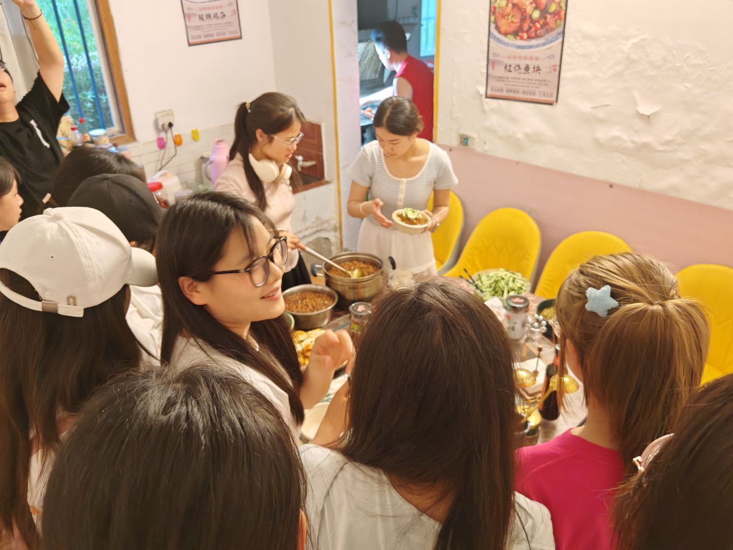 暮色渐浓时,田野旁的农家小院飘来了阵阵香气。原来,两位老师早已准备了地道的北方炸酱面。大盆的黄瓜丝、豆芽菜整齐地摆放在木桌上,热气腾腾的面条浇上浓郁的炸酱,发出滋滋的声响。学生们围坐在木桌旁,用搪瓷碗盛着面条,听杨文浩老师讲述河南烩面与山东煎饼的故事。