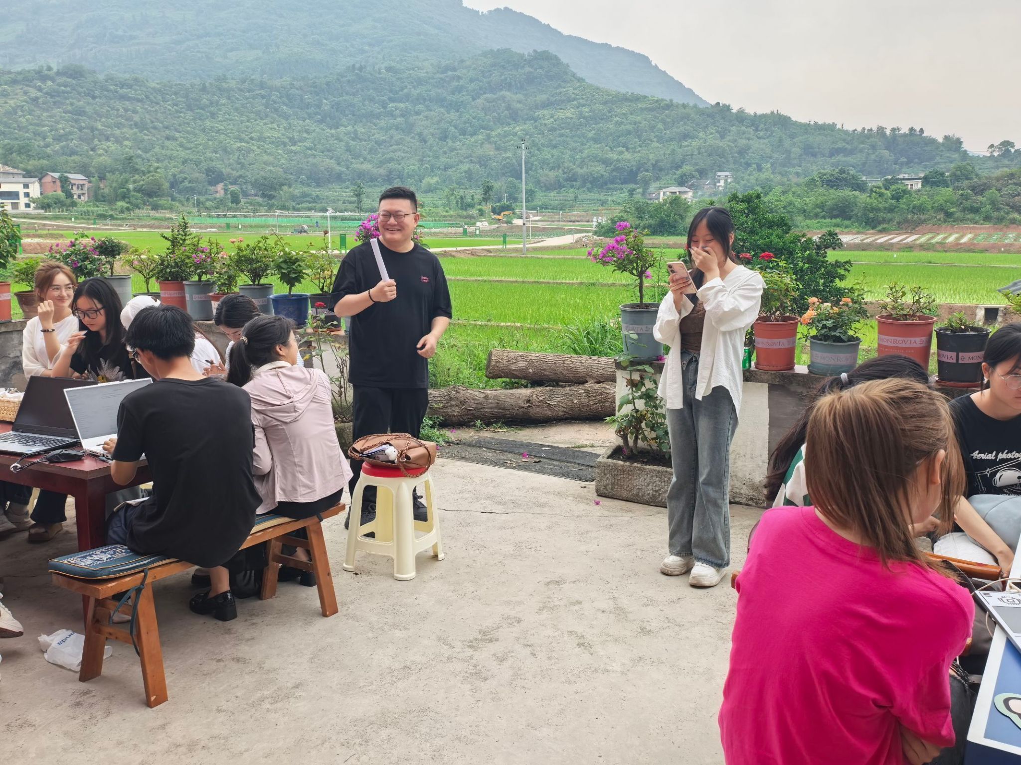 五月的綦江乡间,阳光如蜜般倾洒在翠绿的田垄上,泥土混合着青草的芬芳在微风中浮动。2025年5月23日下午,重庆移通学院创意写作学院作家岗教师杨文浩与电影评论中心王文龙教师,带着《电影鉴赏与评论写作》《戏剧工坊》两个班级的学生,将课堂搬到了这片充满生机的田野工坊基地,一场打破传统教育边界的双师课堂就此拉开帷幕。