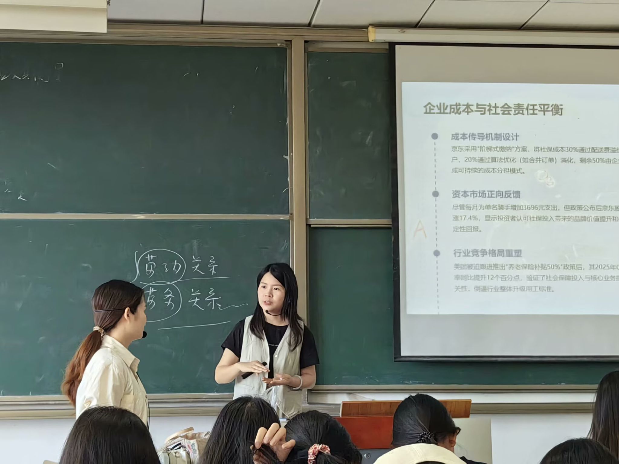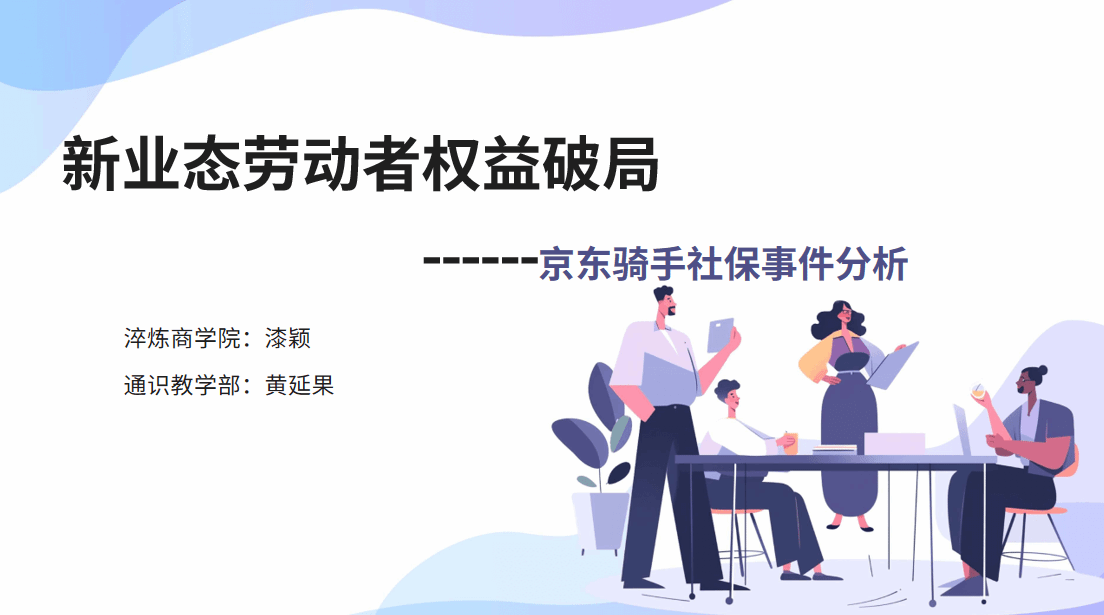 5月29日,工商管理教研室的漆颖老师与通识教学部黄延果老师强强联合,为广大学子带来了一场别开生面的双师课程——“新业态劳动者权益破局——京东骑手社保事件分析”。此次课程不仅深入剖析了当前新业态劳动者,特别是京东骑手在社保方面的现状与挑战,还就政策背景、行业竞争格局变化、劳动关系争议等核心议题进行了全面探讨。
