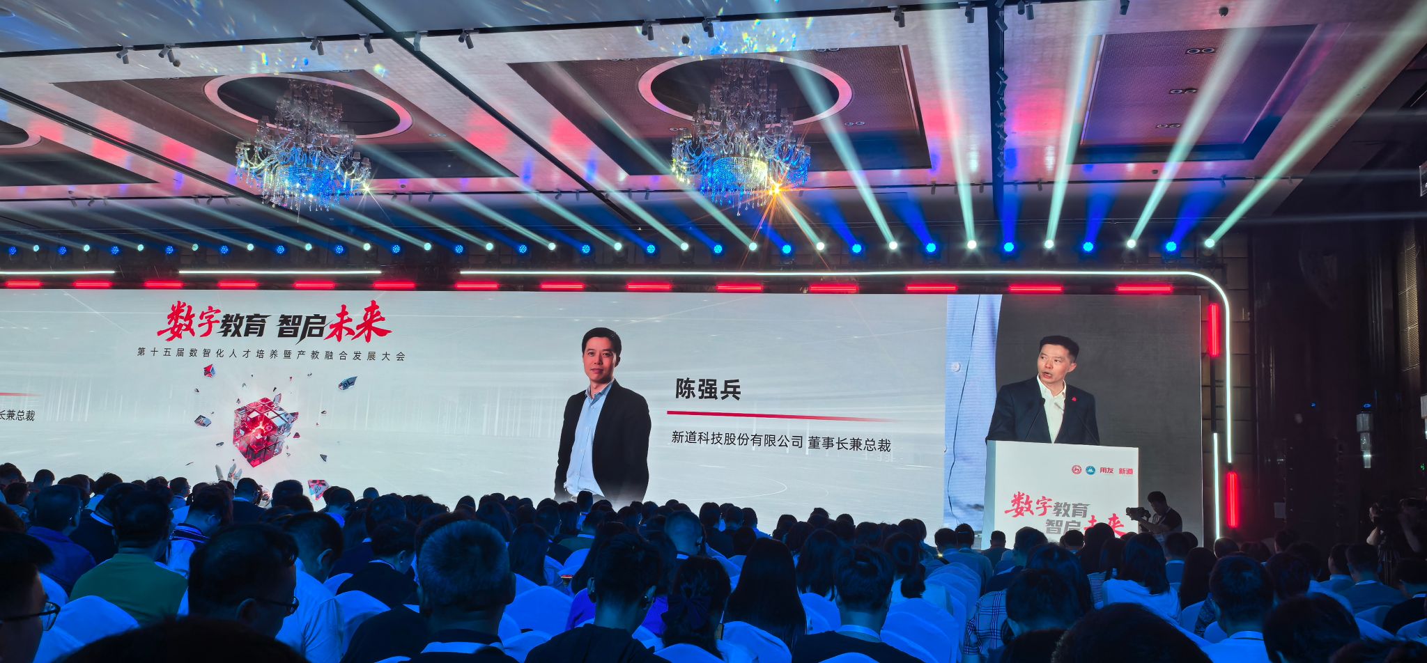 新道科技股份有限公司董事长兼总裁陈强兵表示,希望通过本次大会,能持续推动数字技术与教育教学的深度融合,构建产教协同育人新格局,开启数智化人才培养全新篇章。