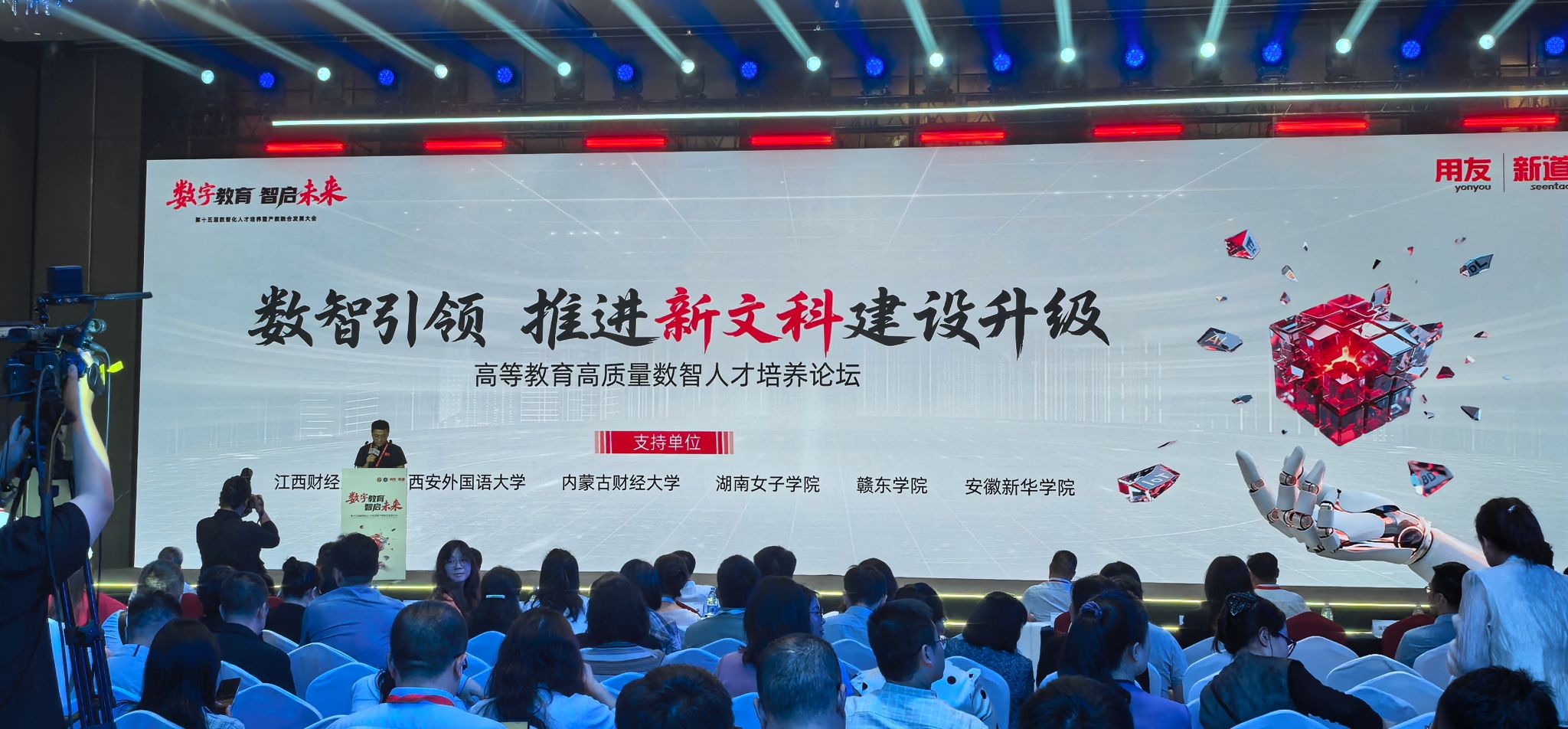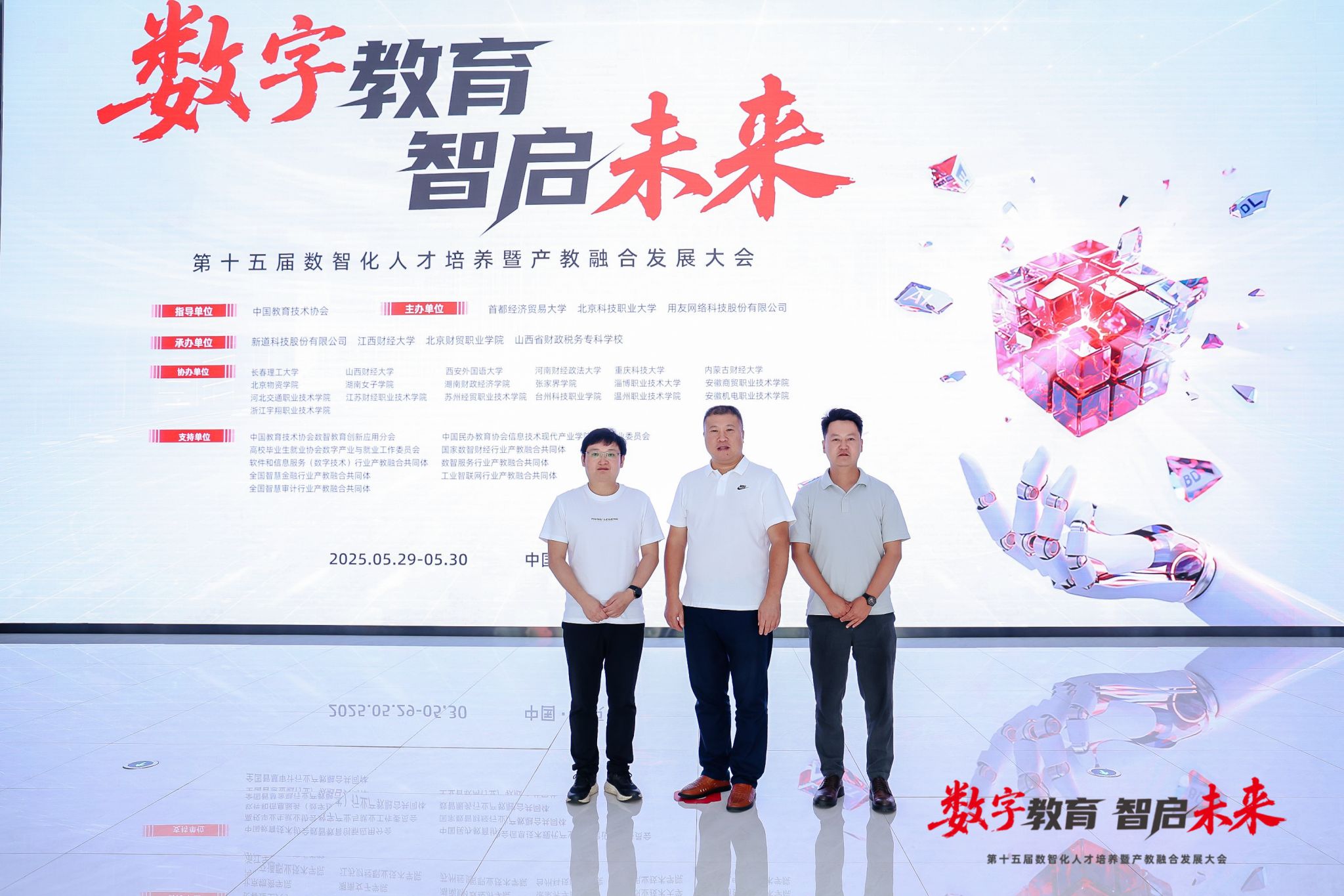 由首都经济贸易大学、北京科技职业大学、用友网络科技股份有限公司主办、新道科技股份有限公司承办的“数字教育·智启未来——第十五届数智化人才培养暨产教融合发展大会”于2025年5月28-30日在北京朗丽兹西山花园酒店隆重举行。重庆移通学院数字经济商学院教学副院长王哲、大数据学院院长潘显兵应邀参加此次大会。大会聚焦“以科技和产业要素赋能教育高质量发展”,围绕高等教育新商科建设、职业教育财经商贸类发展、数智工科人才培养等议题展开深入研讨。