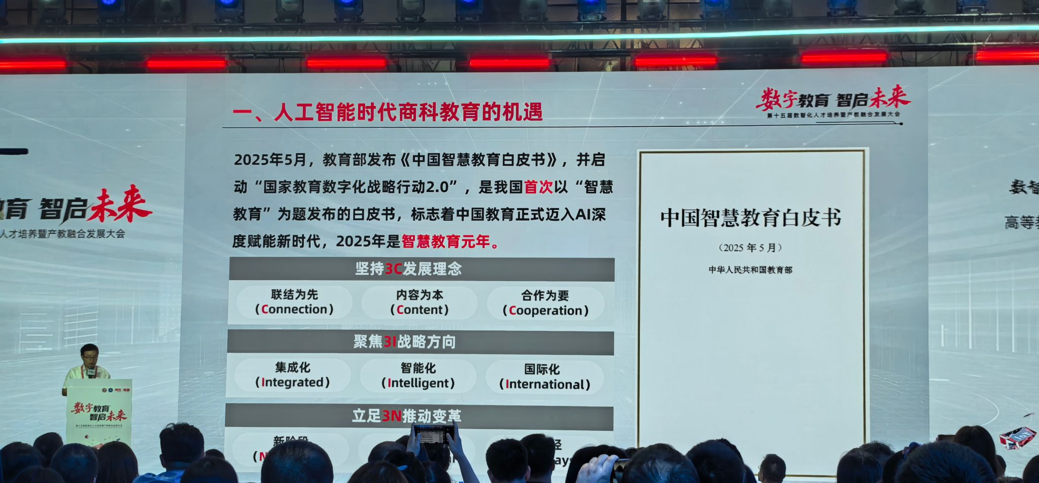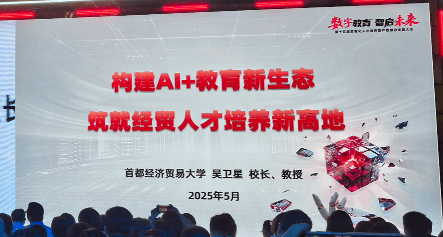 首都经济贸易大学党委副书记、校长吴卫星聚焦“构建AI+教育新生态,筑就经贸人才培养新高地”进行主旨演讲。他表示,人工智能促进教育目标转变、教学形态重塑、教育主体重构。