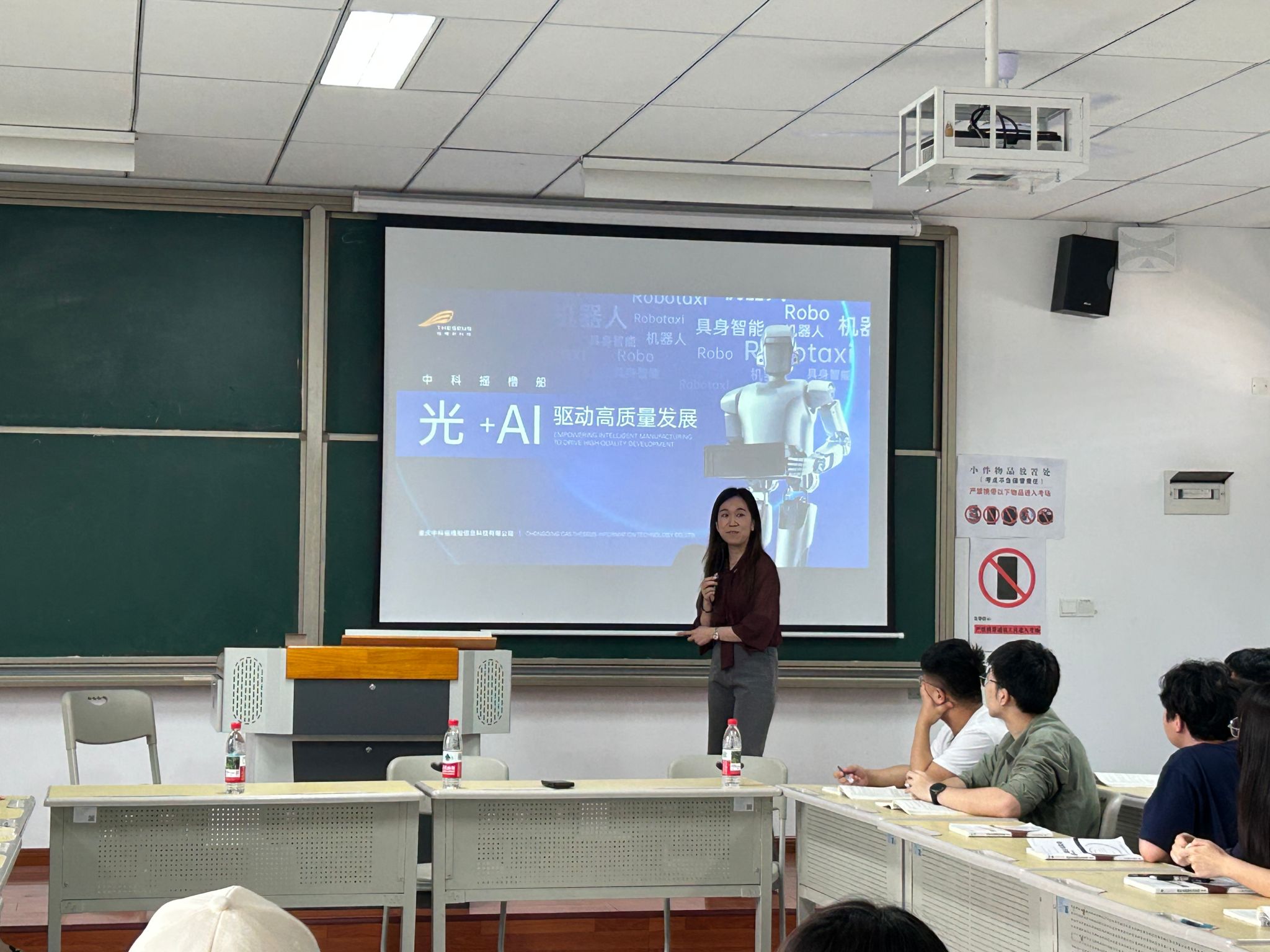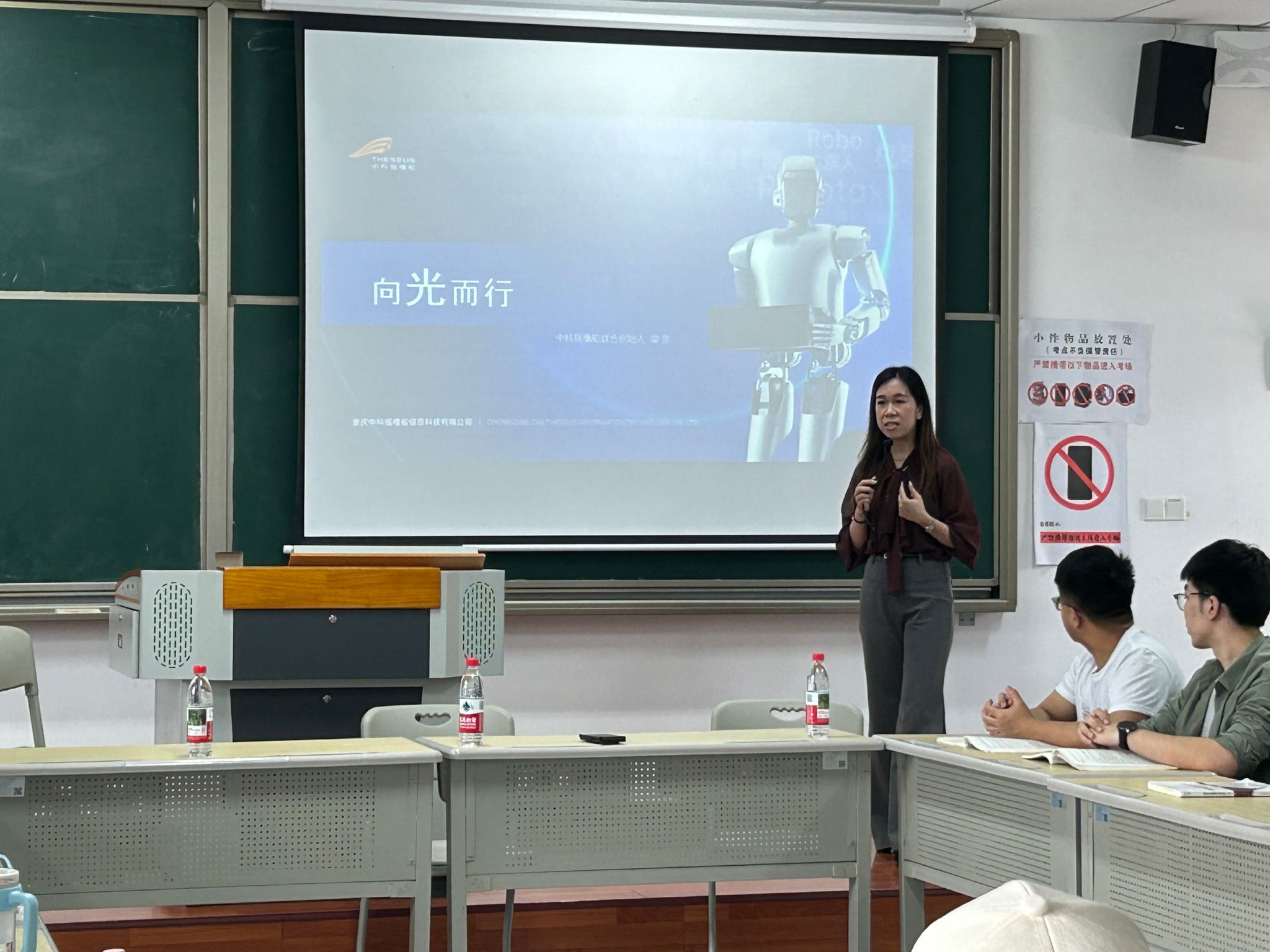 会议开始,陈明燕老师为大家隆重介绍了梁总的个人经历。梁良,正高级工程师、经济师、人力工程师,拥有西南大学双学位与北京大学硕士学历。现任重庆中科摇橹船信息科技有限公司党支部书记、联合创始人,并兼任重庆市大数据产业联盟副秘书长、两江数字经济产业联盟副秘书长及西南大学创新创业导师。分享会她以“人要有远大目标,脚踏实地”为开篇,聚焦公司核心技术,介绍全球首推的智能视觉检测装备,如3D单目结构光相机、MicroLED智能检测装备等,其精度与速度均达国际领先水平。她强调,这些“卡脖子”技术的突破,源于团队将航天级光电技术“降维”应用于国民经济场景的宏大愿景,进一步印证“高精尖技术落地不分地域,关键在深耕决心”的发展理念。
