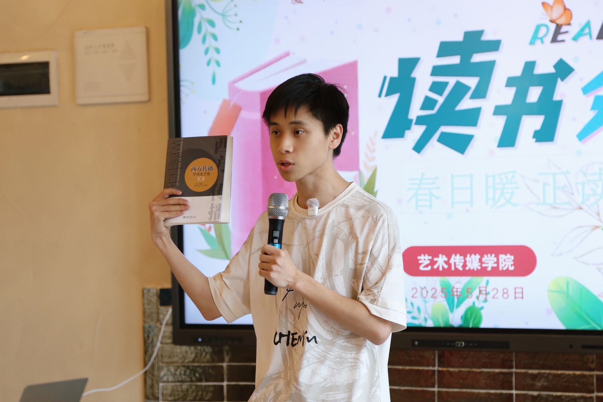 接着,艺术传媒学院党总支书记李轶天为大家分享,她先以提问的方式说道:“有一个人精通多国语言,留学德国十年,在地下室里啃土豆充饥,写了一本《留德十年》,大家知不知道是谁?”在一位老师的回答声中,引出了她要分享的国学大师季羡林,北京大学终身教授,公认的国学大师、语言学家、文学家。他一生贯通中西,精通多门稀有语言,学术成就斐然。但更打动自己的,是他那份历经沧桑却始终朴厚真挚的文人情怀。《留德十年》,我们不仅读到一段特殊的历史,更读到一种在逆境中坚守学问、珍视情谊、体察人性的力量。它告诉我们,真正的学问和修养,最终都落脚在对人、对生活、对这个世界的深刻理解与温情关照上。今天的我们应该多学学大师的精神,他在苦难中专注的钻研学术,从不为遭受的种种不幸叫苦,这种善于苦中作乐的精神令人敬佩,但也唯有这样才能在那些困难的日子里真切地体会到读书的好处!