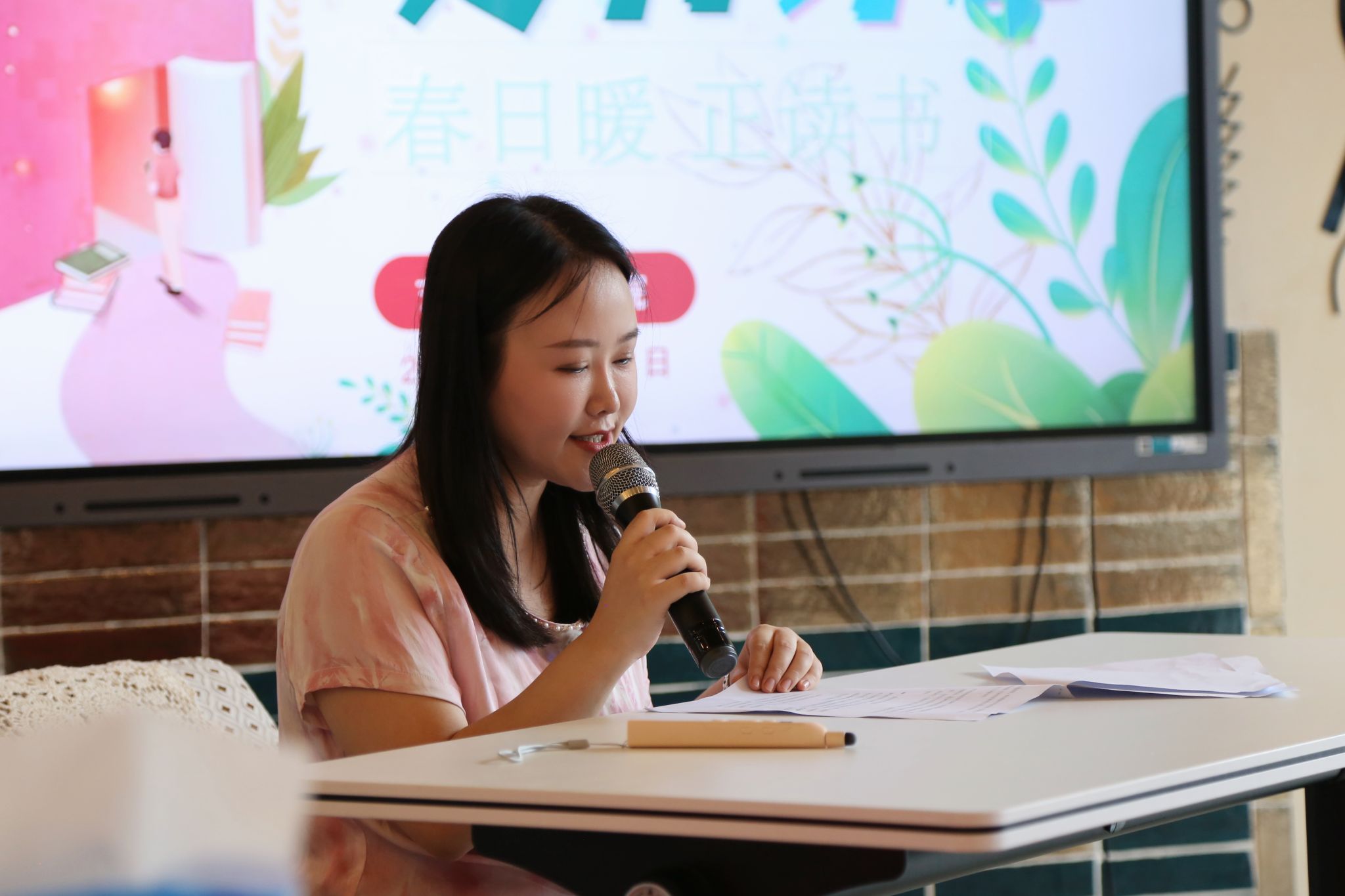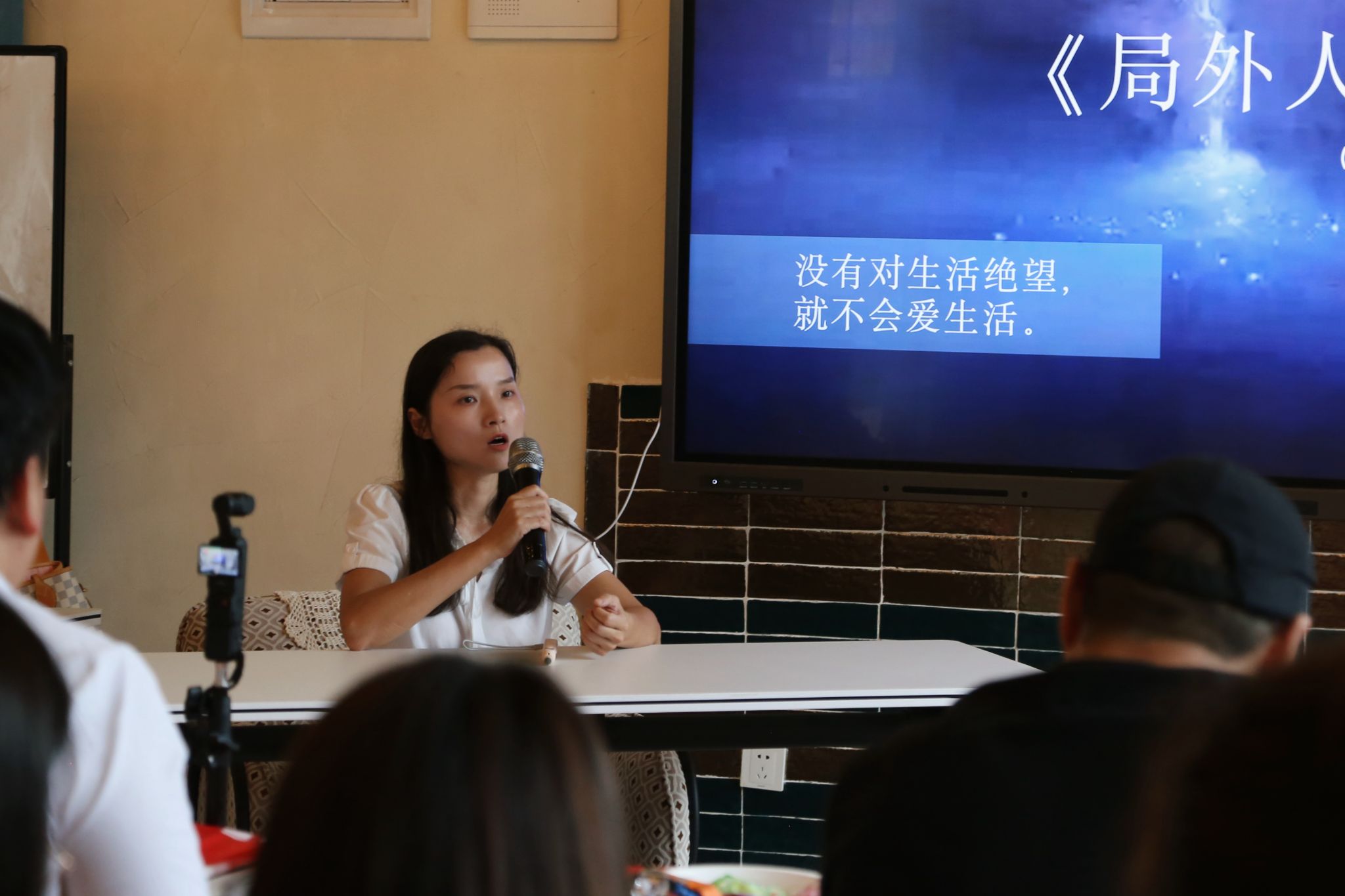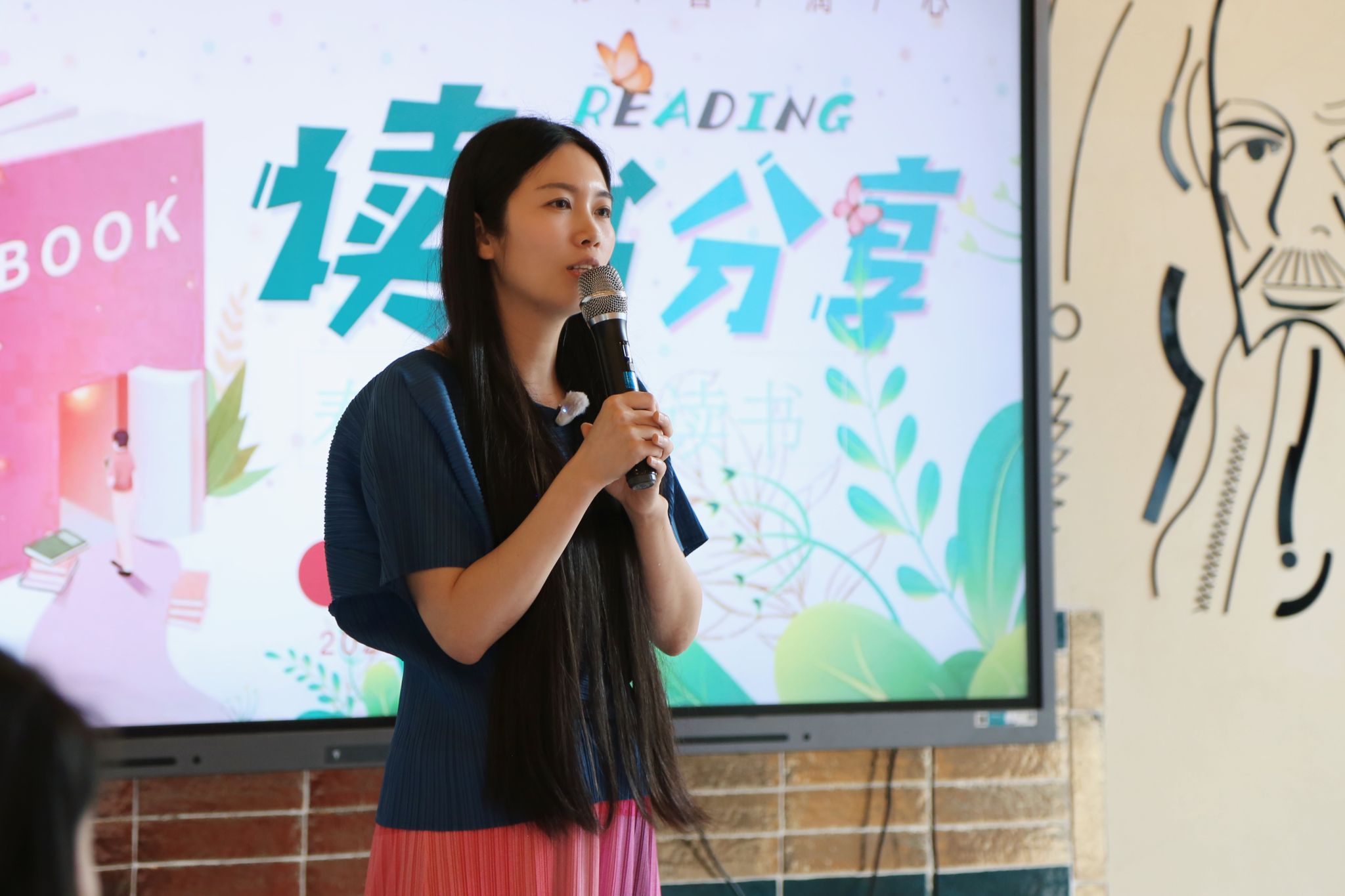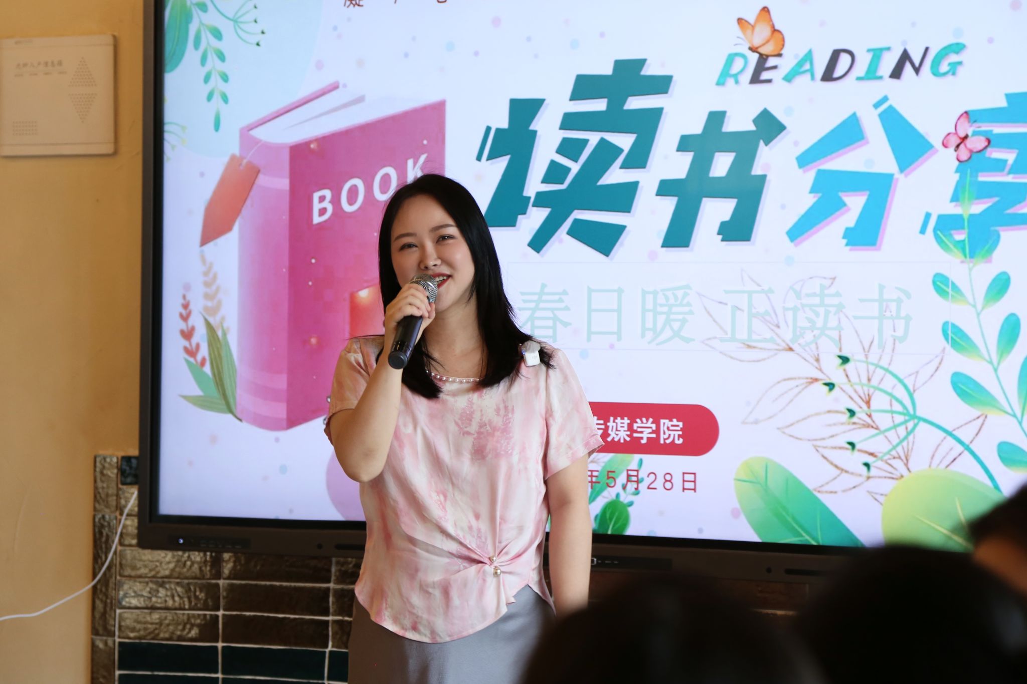 春日暖风香,读书正当时。主持经验丰富的黄慧老师通过她富有感染力的开场,获得了大家热烈的掌声,一下就调动起现场如阳光般温暖的氛围。选择一本好书犹如一场美丽的邂逅。艺术传媒学院党总支组织委员赵琳老师作为第一位分享人,给大家带来了世界名著《局外人》,这是她在一段人生低谷期时遇上的好书。她说,在看这本书时并没觉得这是一百多年前一个陌生环境中难以理解的故事,反而小说中的事件和人物对事件的反应和思考,都能瞬间联系到现实。因为生活中的许多人都或多或少地带有“局外人”的思维处事:不想过多地关注世事和他人,不想被界的纷乱打扰到自己的生活,自己也是一样。所以书中的许多片段带给她强烈的共鸣和许多的思考。她通过概述故事情节现场分享了一些书中触动她的语句,把治愈她心灵的文字分享给大家。