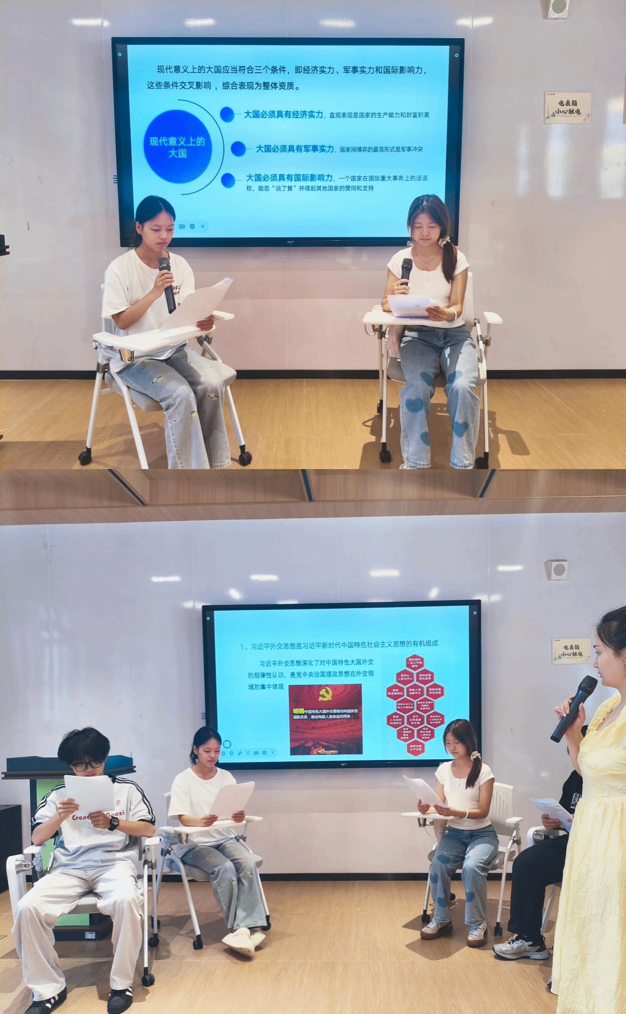 贺铭钰老师在点评环节进行了深入浅出的专业分析。她指出:"在全球治理实践中,大国与国际组织并非非此即彼的二元对立关系,而是相互依存、优势互补的合作伙伴。当今世界面临的复杂挑战,既需要大国展现政治意愿和资源动员能力,也需要国际组织发挥专业优势和协调作用。"贺老师特别强调:"青年学子在思考全球治理问题时,要避免陷入简单的'非黑即白'思维。真正的智慧在于理解不同主体的比较优势,探索最优的合作路径。"她的点评引发了在场同学的深入思考,为后续讨论奠定了理论基础。