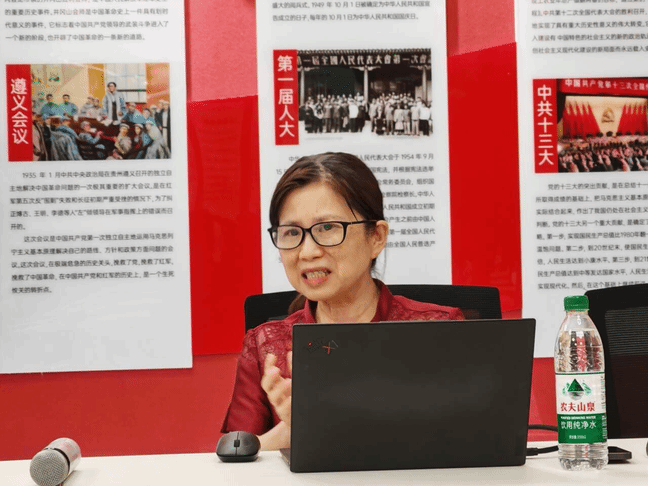 讲座尾声,数字经济与信息管理学院院长刘贵容同志作总结发言。她对张教授的精彩分享表示感谢,高度评价讲座意义。然后以“三个强化”对支部工作提出新要求:强化政治引领,将习近平新时代中国特色社会主义思想贯穿教学科研全过程,把支部建成“讲政治、懂业务、善育人”的坚强堡垒;强化责任担当,全体党员教师要以张教授为榜样,在市级项目申报、课程思政建设等工作中亮身份、作表率;强化育人实效,依托“党建+科研”工作室,开展“党员教师科研开放日”活动,引导学生参与支部科研项目,培育学生党员骨干。