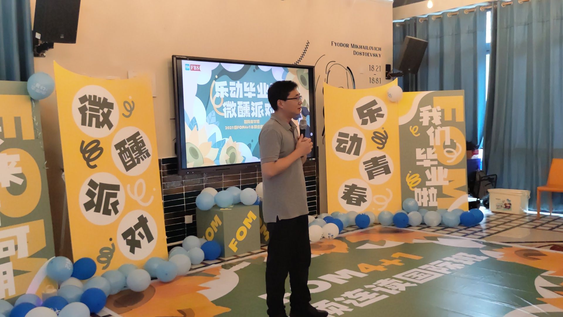 当盛夏的风轻轻吹过校园,毕业的钟声也悄然敲响。6月4日下午4点整在天空书院陀思妥耶夫斯基书屋,国际商学院 2021 级 FOM4+1 本硕直通国际班的同学们迎来了一场别开生面的毕业典礼 ——“乐动毕业季・微醺派对”。这场充满欢笑与感动、微醺与温情的盛宴,为同学们在重庆移通学院的求学生涯画上了圆满的句号,也为他们即将开启的德国新旅程送上最美好的祝福。