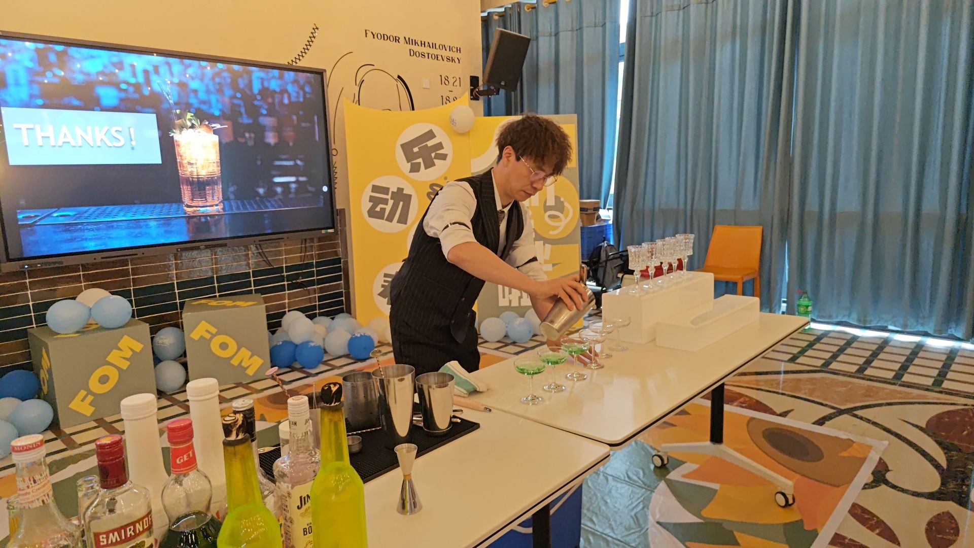 当然,作为 “微醺派对”,怎么能少了美酒的点缀呢?学院特意邀请了专业的调酒师来到现场,为大家带来一场视觉与味觉的双重盛宴。调酒师在操作台前宛如一位魔术师,手中的酒瓶上下翻飞,各种色彩鲜艳的基酒与果汁在摇酒器中欢快地舞动。不一会儿,一杯杯造型精美、色彩绚丽的鸡尾酒便呈现在大家眼前。同学们围在调酒台前,好奇地观看调酒过程,时不时发出阵阵惊叹。品尝着这些独特的鸡尾酒,微醺的感觉渐渐涌上心头,大家在轻松愉悦的氛围中,畅聊着过去的趣事,憧憬着未来的美好。