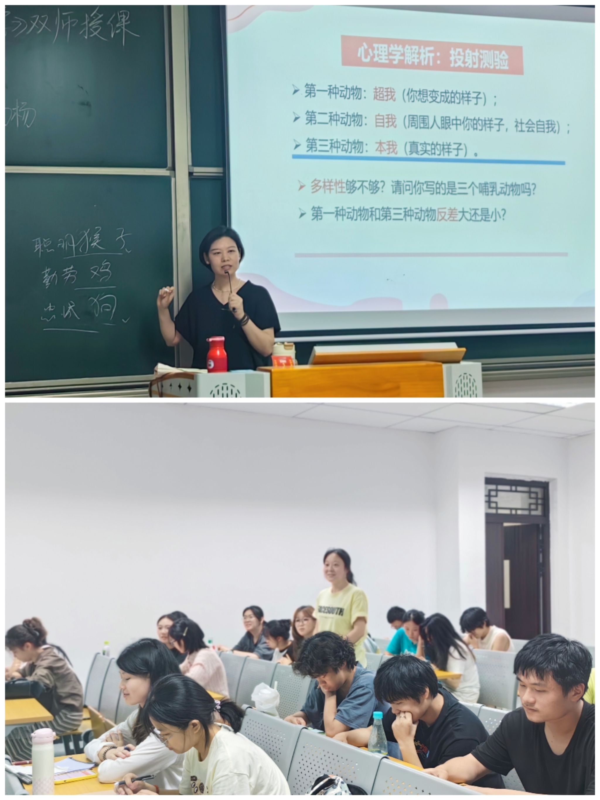为帮助学生更全面地认识纳什均衡,涂杨杨老师基于弗洛伊德人格理论剖析了数学家纳什的生平,探讨其精神分裂的原因。涂老师从人格的拉丁文出发向学生介绍人格是什么,并基于电视剧《柒个我》和书籍《24个比利》让学生感知到人格突破整体性的表现。进而,涂老师结合弗洛伊德人格结构理论的本我、自我和超我分析了纳什的人格,找出了纳什出现人格分裂可能的主要原因。最后,涂老师通过“快速识人”游戏,帮助学生们快速了解自身的人格特点,思考如何优化学习和生活安排,助力个人成长。