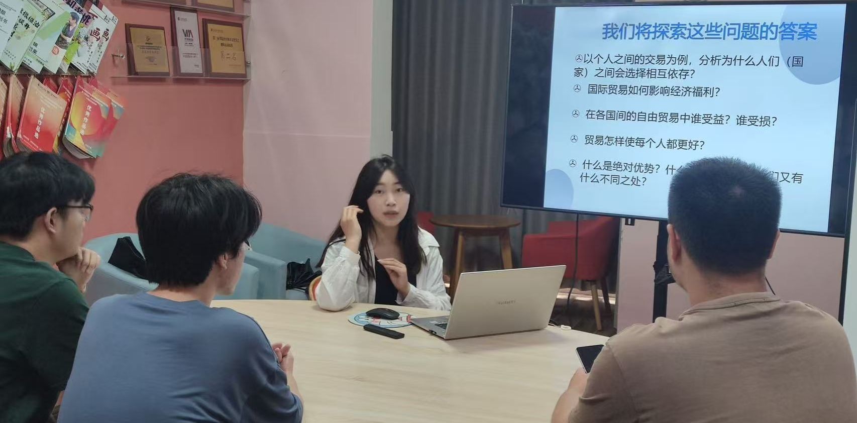 2025年5月14日下午,师生齐聚在别都书院共同开启经济魔方工坊第二期国际贸易之旅。周俊老师以“国际贸易:相互依存性与贸易的好处”为话题带领同学们展开详细探讨,通过生动的案例和热点话题,引导学生深入思考国际贸易的重要性和贸易壁垒的多方面影响,生动剖析了国家间经济依存关系的本质。在互动研讨中,同学们不仅理解了国际贸易对全球繁荣的关键作用,还学会了从多维度审视贸易政策的利弊。本次活动不仅深化了大家对国际经贸格局的认知,从而培养理性看待国际贸易问题的思维能力。