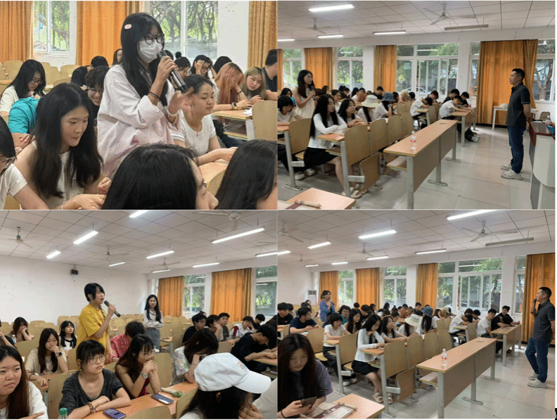 在自由提问环节,学生们积极踊跃发言,就“统计学在社媒营销中的应用。”、“企业用人最需要大学生具备哪些素质?”、“如何在大学期间平衡学习和生活。”等问题向范总请教。范总结合自身经验,耐心解答并给出实用建议。
