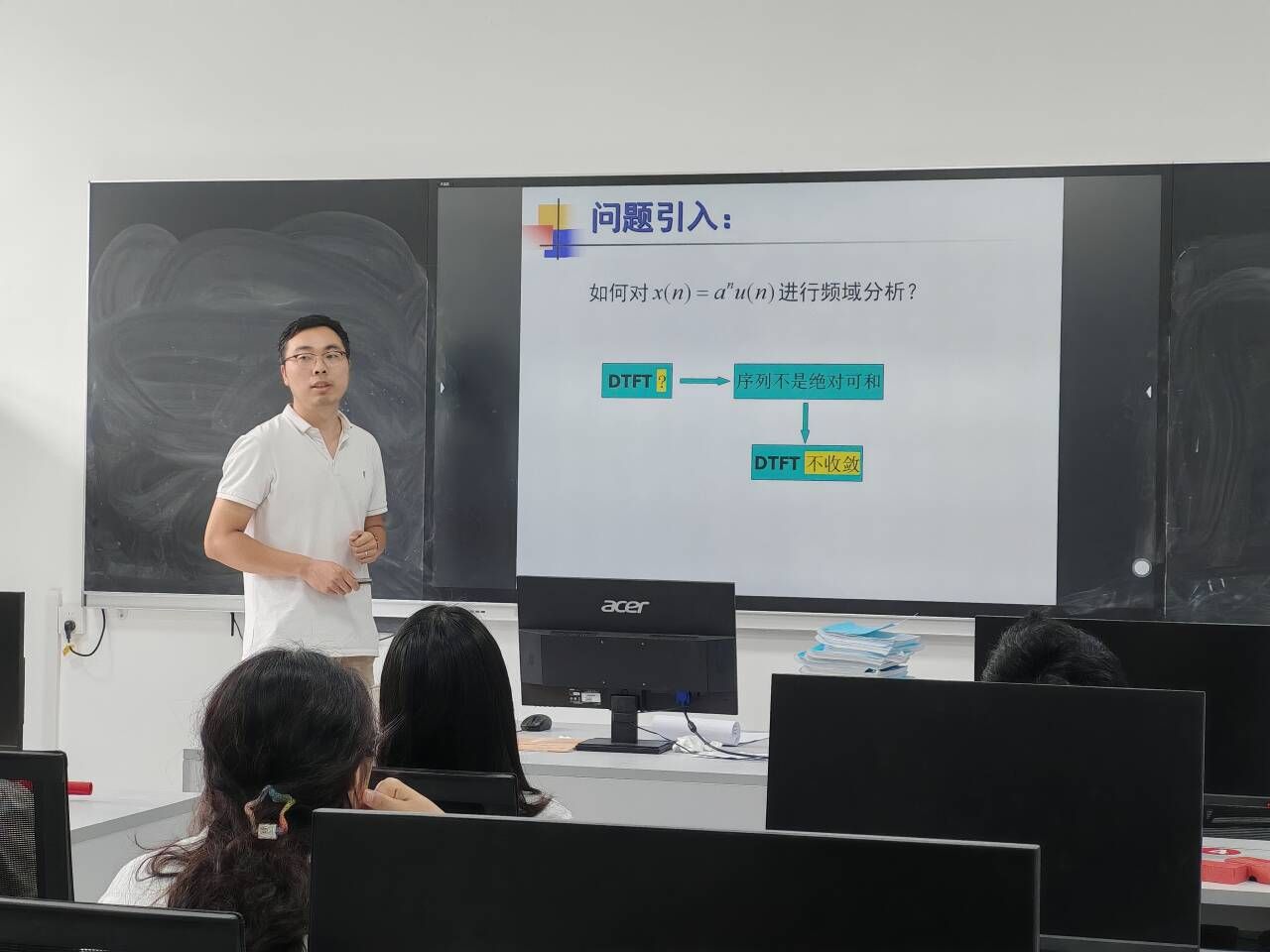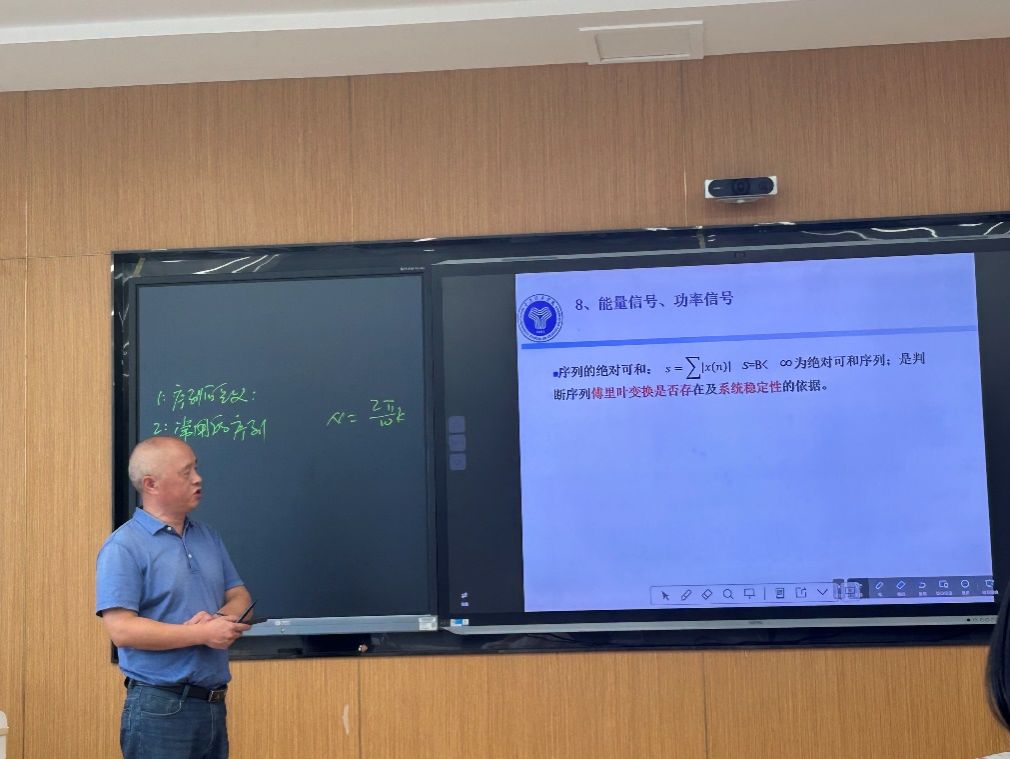 张辉老师围绕《数字信号处理》中“序列的Z变换”展开教学,先抛出如何对序列进行频域分析的问题,引发学生思考,接着由浅入深地讲解了序列Z变换的定义、序列特性对收敛域的影响,及Z变换的性质和定理。线性性质简化复杂序列分析,移位特性调整信号时间位置,时域卷积定理将卷积运算转化为乘法,大幅简化计算。张老师深入浅出的讲解,让原本晦涩的知识变得容易理解。针对张老师的讲解,费莉老师建议,在知识拓展方面,可以引入一些前沿的研究成果或者相关领域的最新技术动态,让学生了解序列Z变换在当下科技发展中的应用趋势。