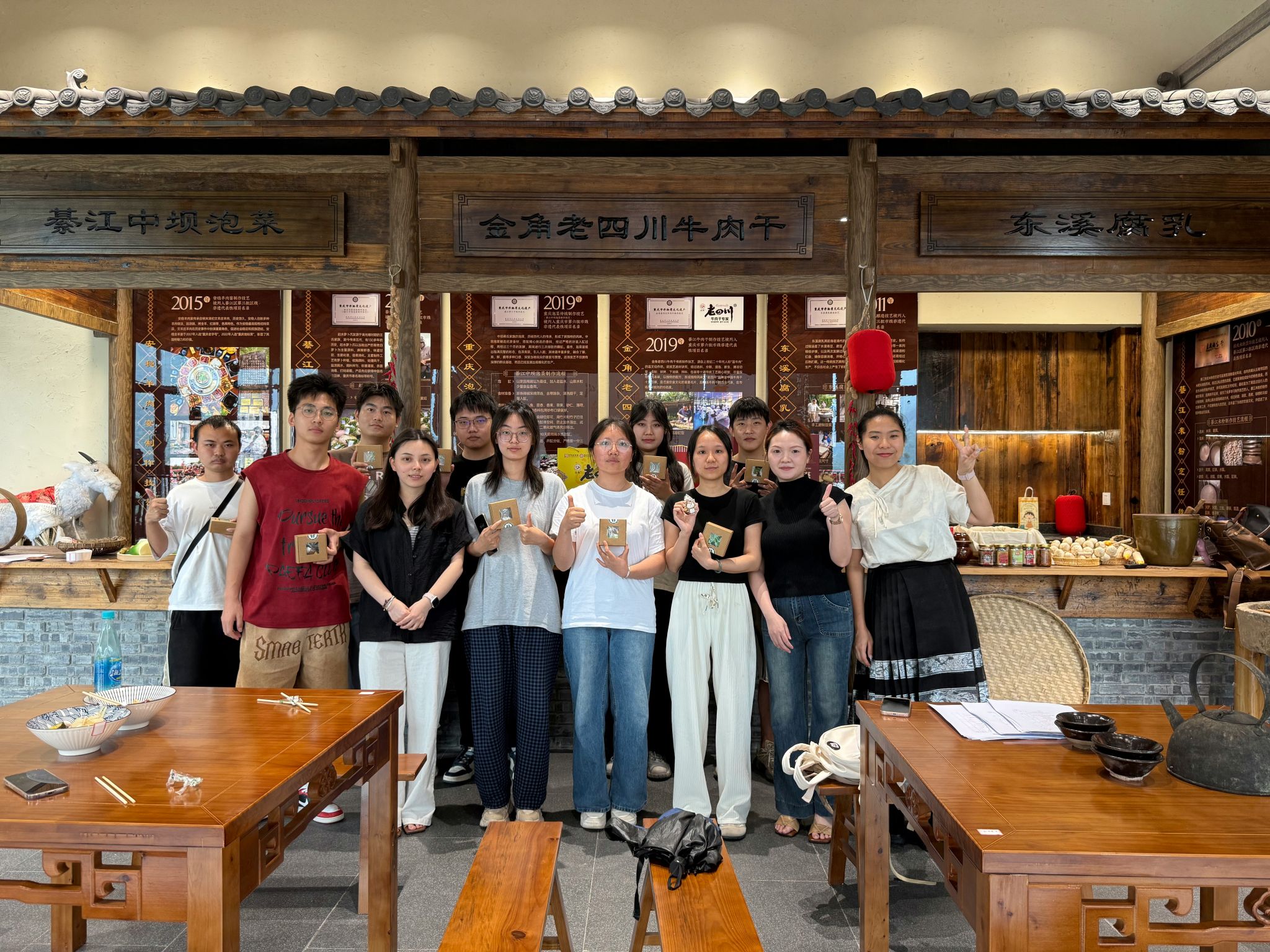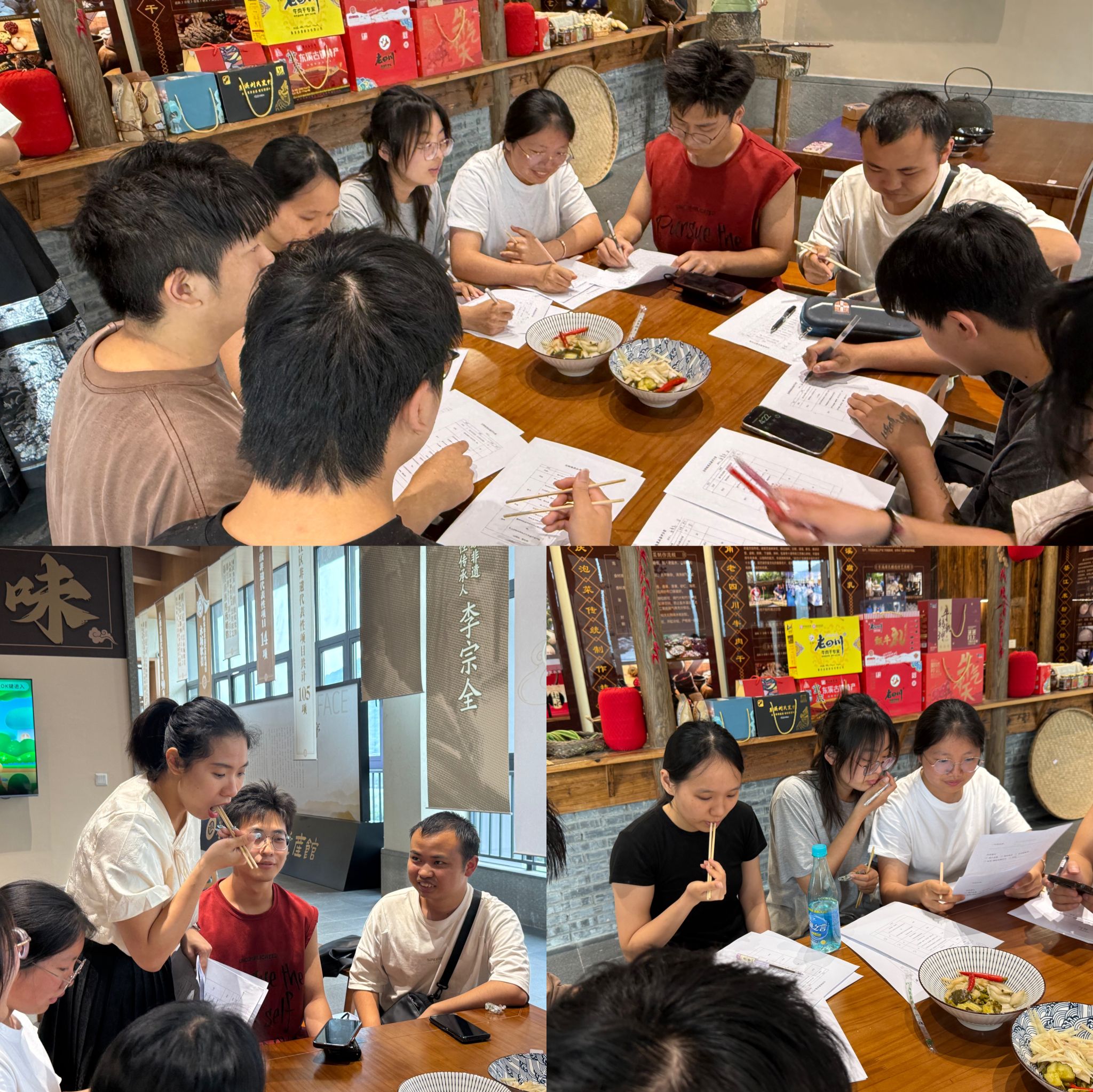 本次活动创新性地将通识课堂延伸至非遗展馆,成功实现了知识传授与文化体验的结合。王梓凡老师表示:“我们将继续深化‘阅读+实践’的育人模式,以书籍为媒介,以文化为纽带,推动巴渝文化的创新性传承与发展。”活动尾声,展厅内弥漫着泡菜的醇香,师生们在欢声笑语中共同品味劳动成果,这场别开生面的“舌尖上的文化课”不仅让同学们深刻体会到巴渝饮食文化的独特魅力,更通过年轻学子的亲身参与为非物质文化遗产传承注入了新鲜活力。