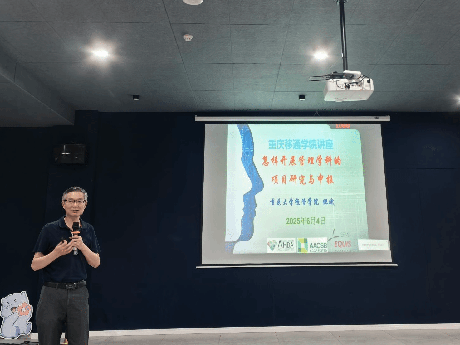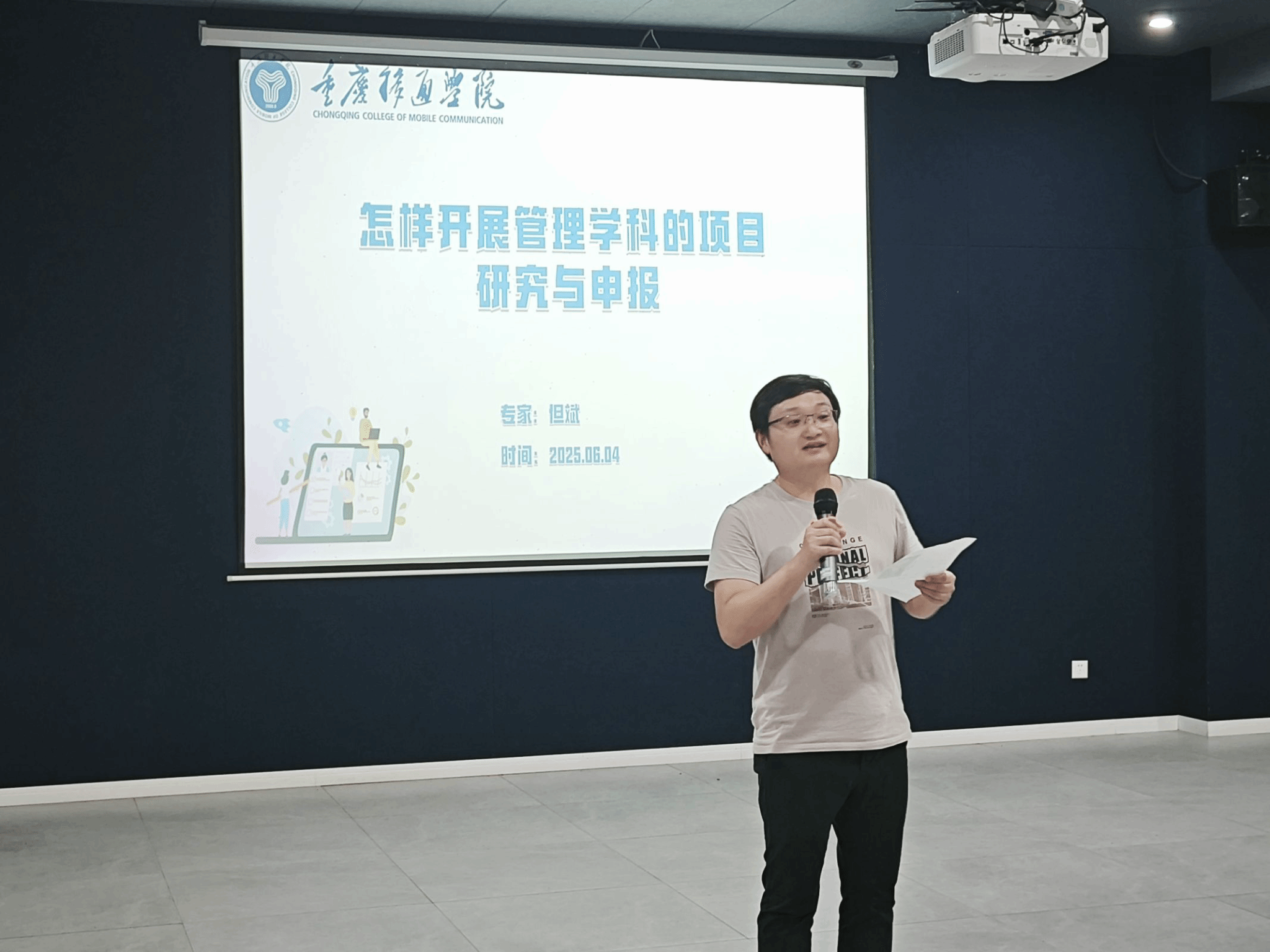 为提升管理学科教师科研能力,推动学科建设高质量发展,2025年6月4日下午16:00,数字经济商学院特邀重庆大学经管学院但斌教授于綦河书院·银河影音室做“怎样开展管理学科的项目研究与申报” 专题讲座,数字经济商学院全体专任教师齐聚一堂,共襄学术盛宴。