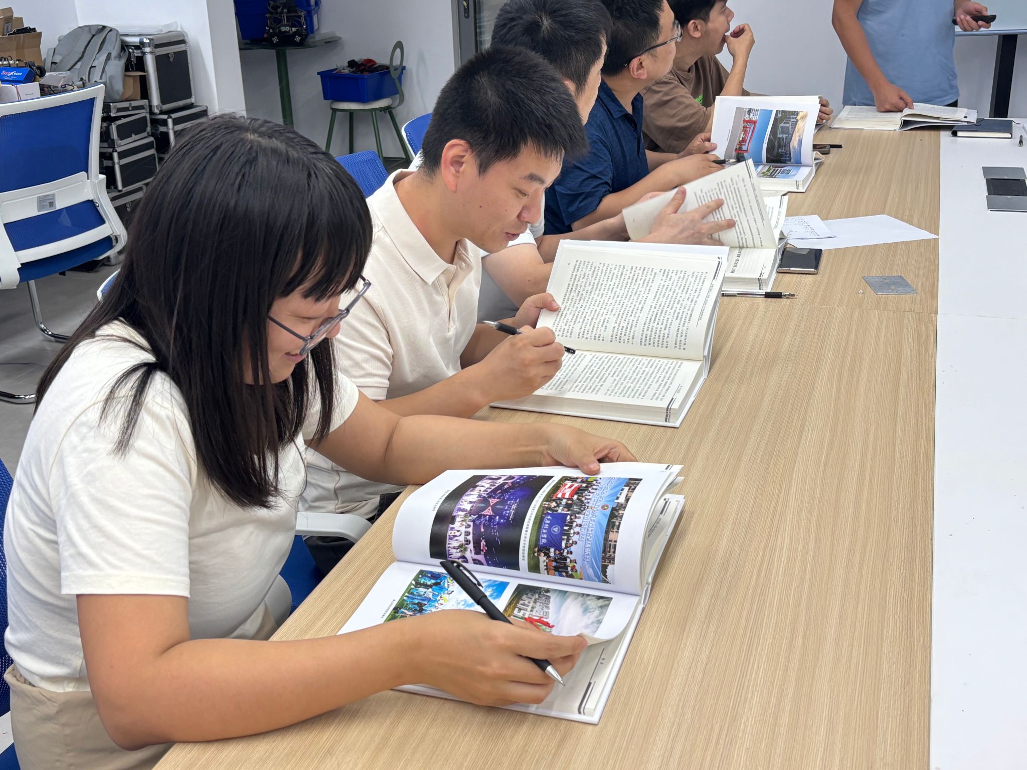 智能工程学院学工队伍在松格A06完满教育展厅开展《梦想与实践》(第二辑)集体学习活动,就彭鸿斌董事长在书中所提出的教育理念展开深入交流与探讨。