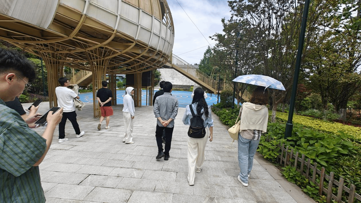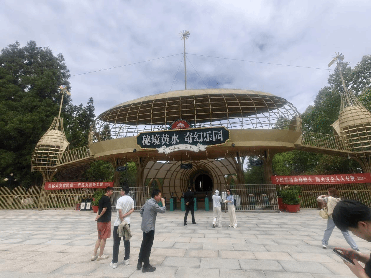考察首站便到达了秘境黄水景区,秘境黄水景区位于重庆石柱县,以高山湖泊、原始森林和土家风情闻名。这里夏季平均气温仅21℃,是避暑胜地。主要景点有太阳湖、大风堡原始森林和土家吊脚楼群,适合生态旅游与民俗体验。在秘境黄水内考察团游览了“秘境黄水奇幻乐园”景区。在该景区内设施完善,空间留白充足,但除娱乐设施及硬件设备外内容IP与使用故事进行传播的抓手存在一定的上升空间,就此特点考察团同志一致认可可以从虚构故事的角度进行深挖塑造。