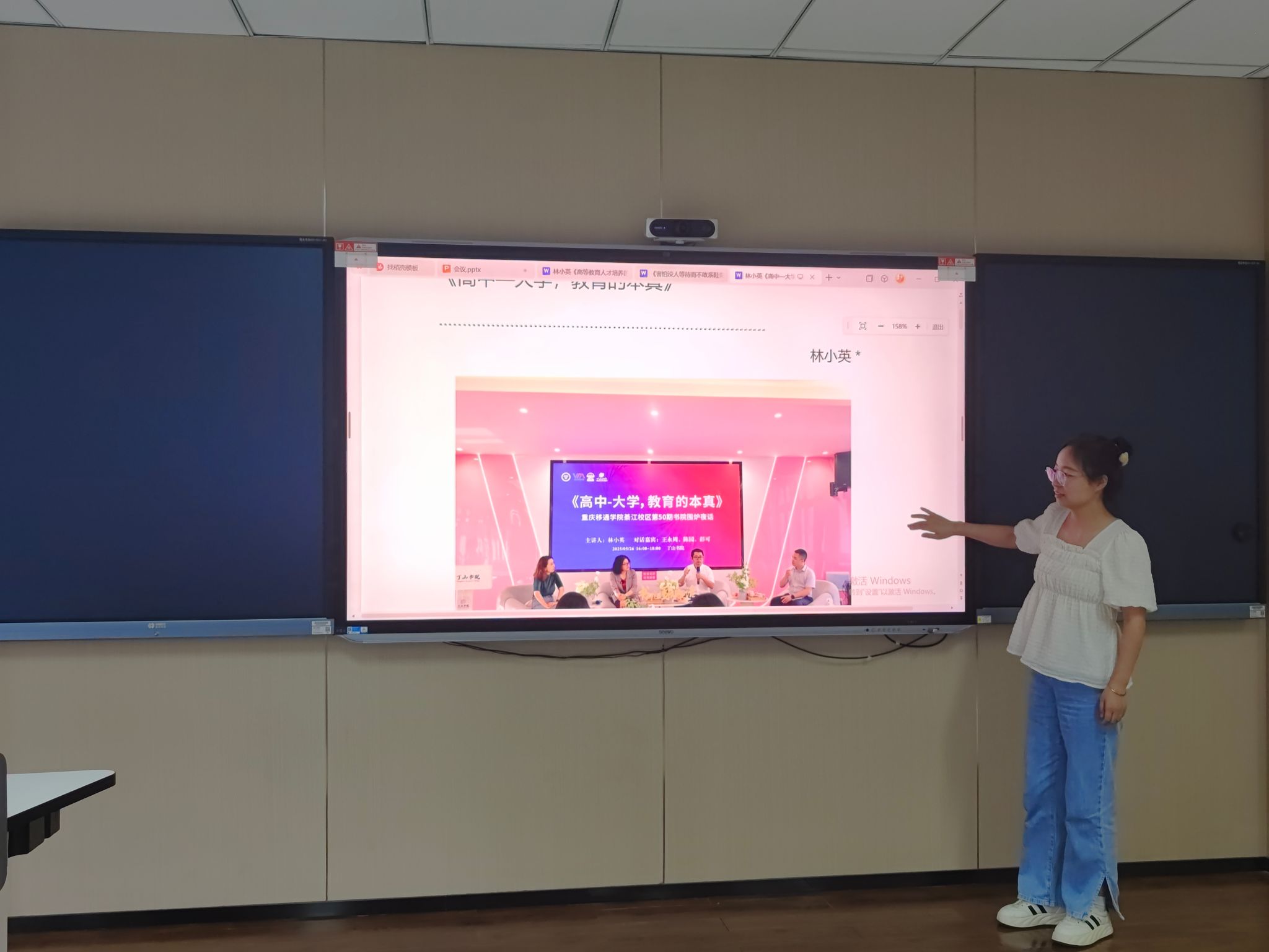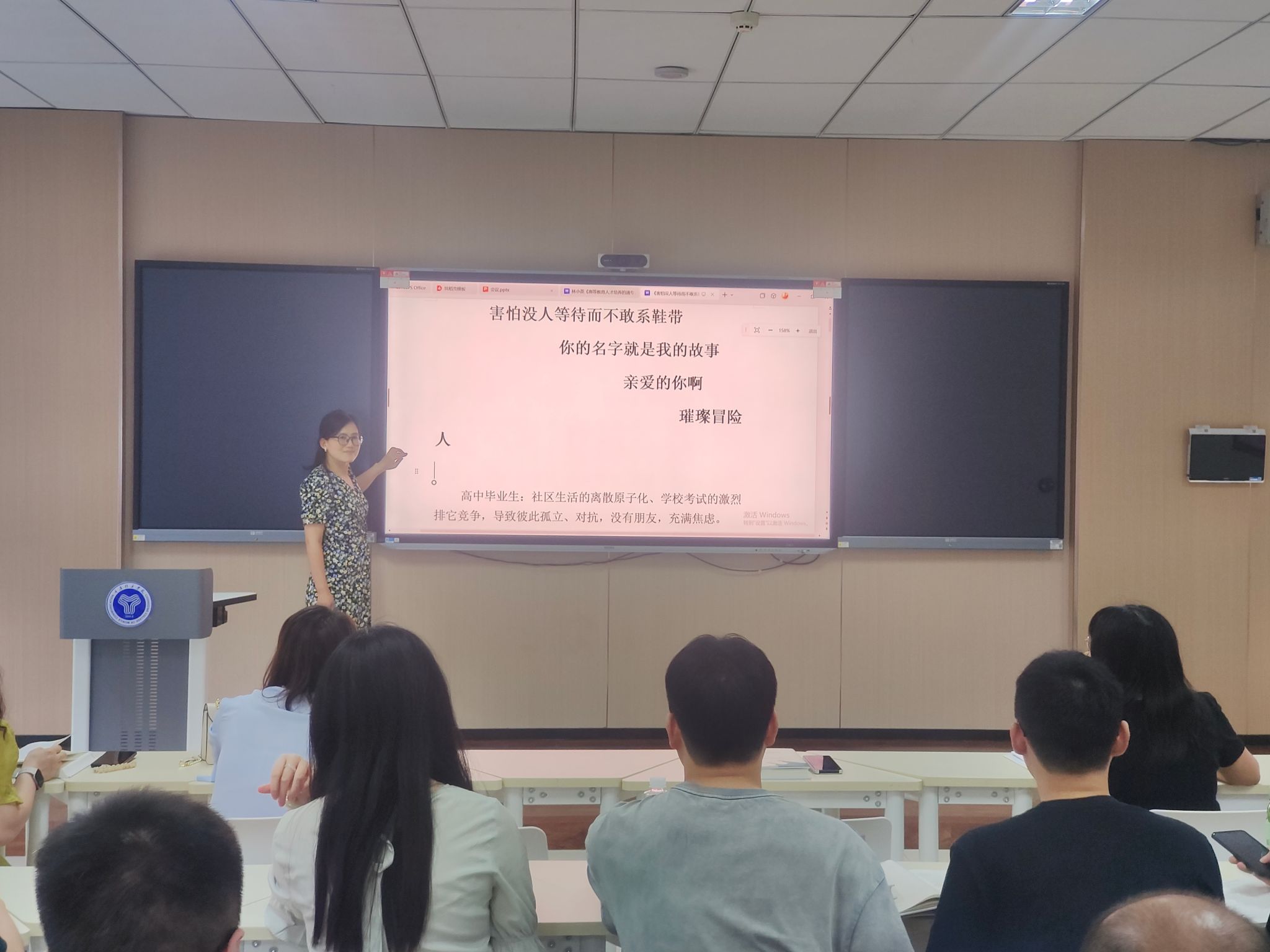 王茜老师围绕《高中—大学,教育的本真》展开分享。她指出,大学教育应当超越单纯的知识传授,更应注重学生人格的塑造和社会适应能力的培养。王老师特别强调,在“四位一体”办学理念指导下,教师需要转变角色,从知识灌输者转变为思想引导者,帮助学生实现从校园到社会的顺利过渡。