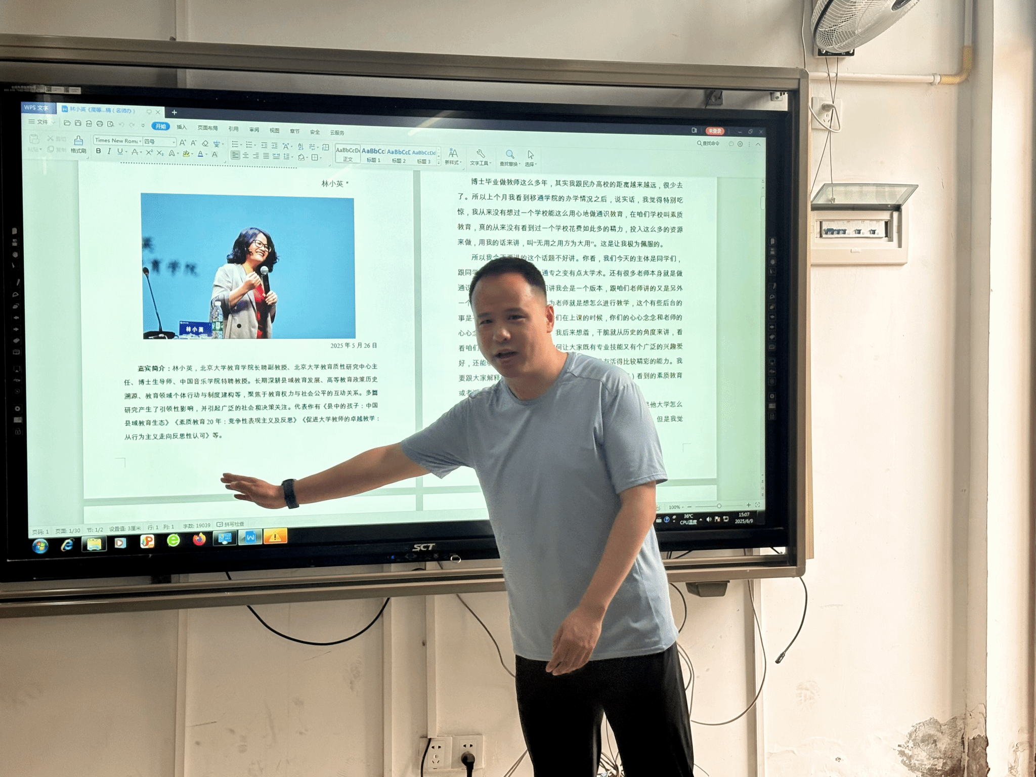 董友文老师分享了《害怕没人等待而不敢系鞋带》的学习体会,他表示教育应关注学生的心理健康发展,对于在传统评价体系中“失利”的学生,教师应像“系鞋带的人”一样,给予学生等待、支持与陪伴,帮助他们找到属于自己的光芒。