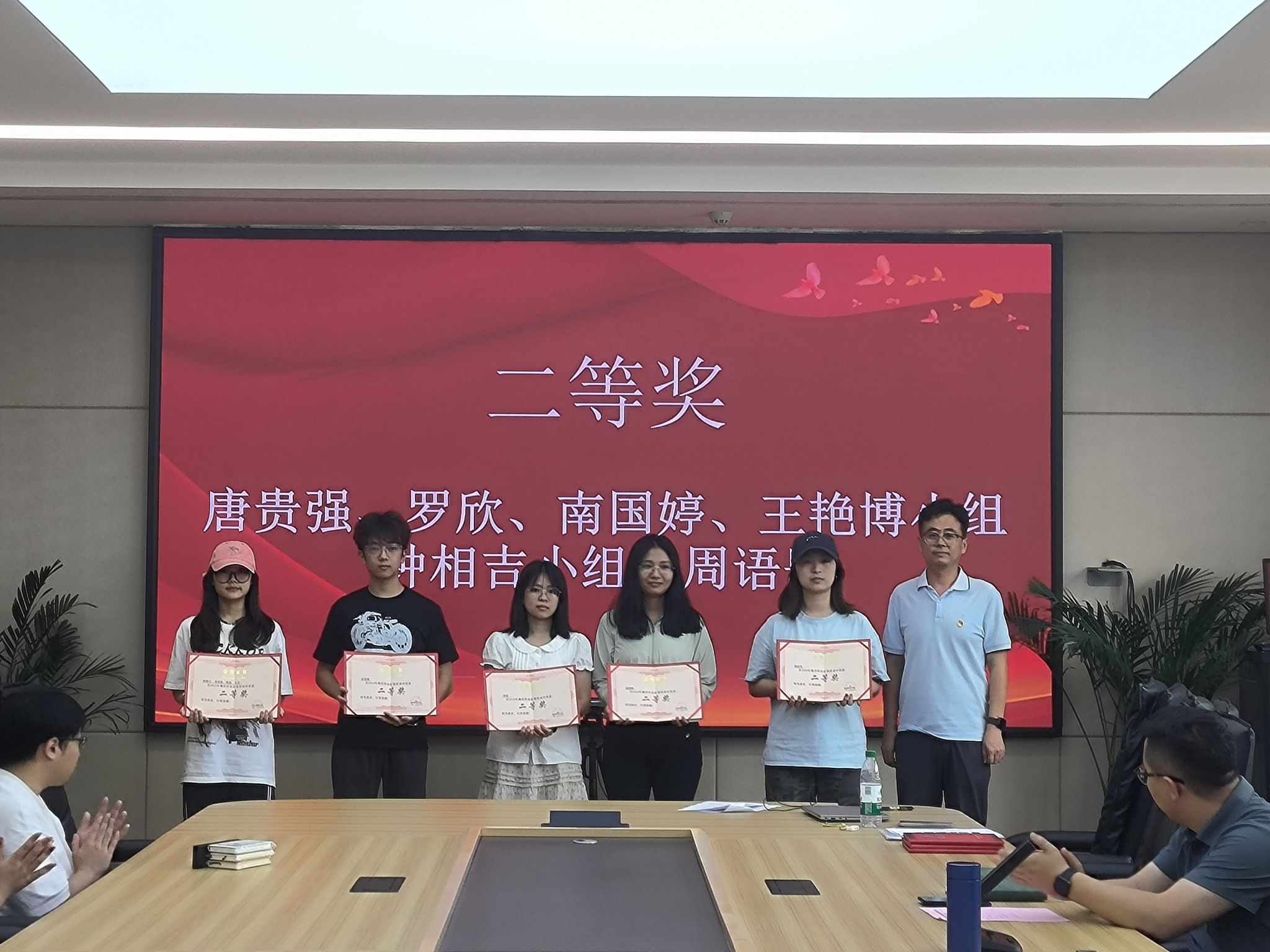 党政综合办主任曹瑞峰同志为二等奖获奖者颁奖
