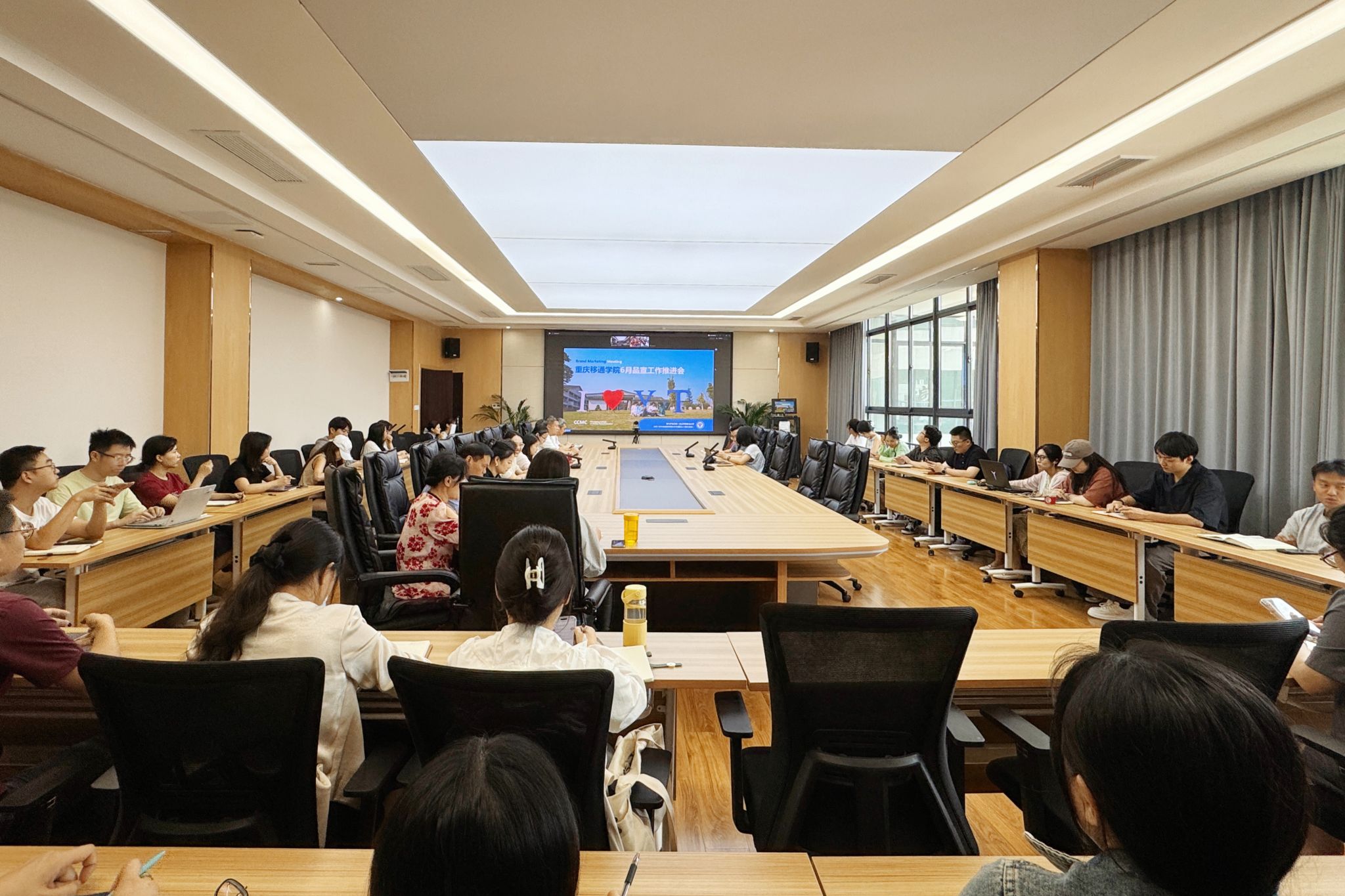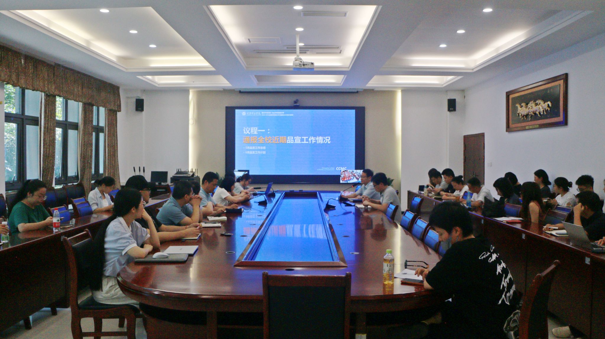 6月12日,重庆移通学院6月品宣工作推进会在双校区同步召开,党委书记何先刚,校长助理张平、谢银平出席,品宣中心全体人员及各二级单位负责人参会。