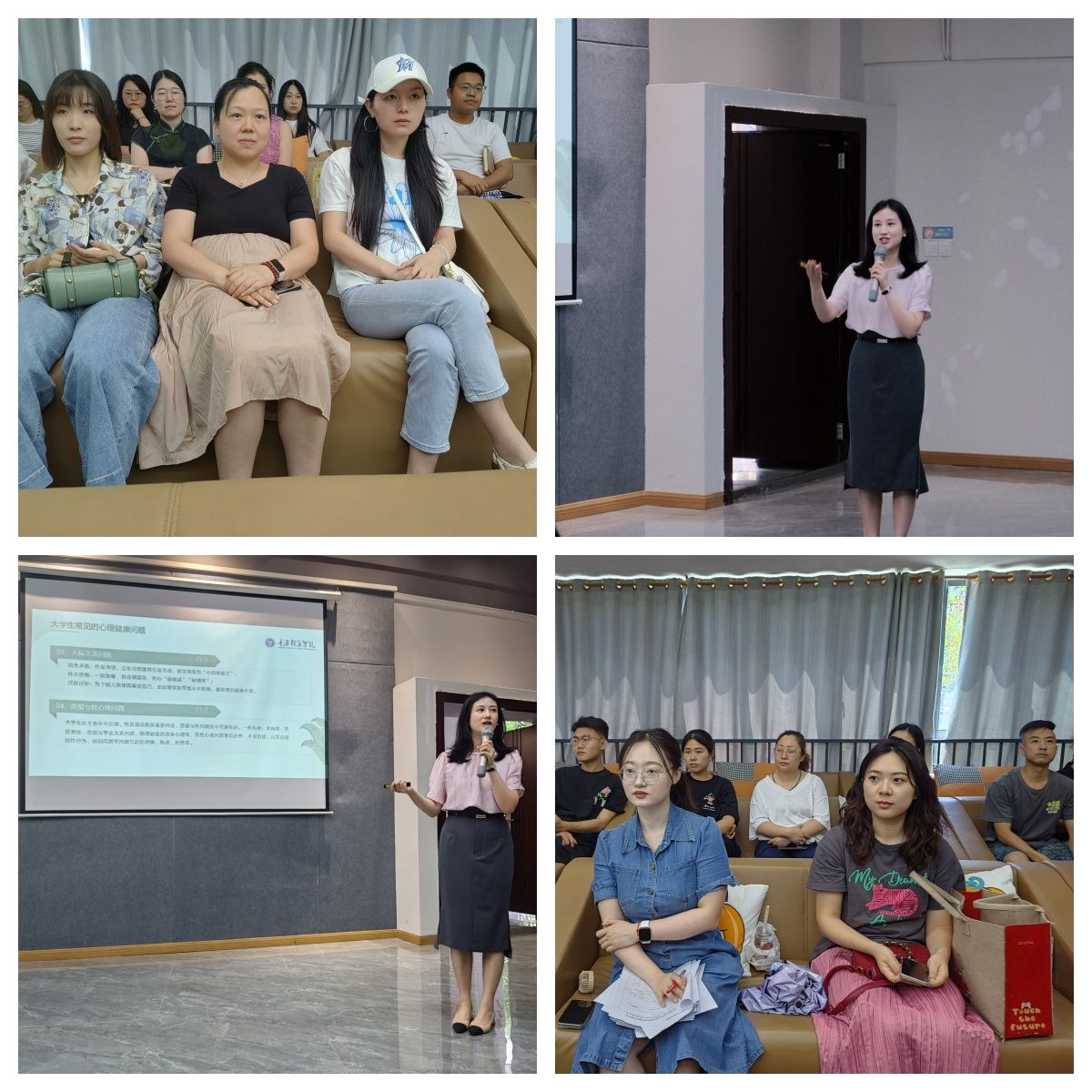 校兼职心理教师邓巧老师以“从识别到支持,守护学生心灵成长”为主题,围绕大学生常见心理健康问题、异常信号识别、有效沟通技巧及心理危机干预等内容,进行了系统讲解。她结合多年心理健康教育与咨询经验,深入剖析了大学生在学习压力、人际关系、情绪调节、恋爱与性心理、求职择业等方面的典型困扰,提醒异科导师们关注学生在生理、情绪和行为等层面的异常信号,尤其是在开学适应期、毕业季、考试周及重大生活事件后等心理高危时段。邓巧老师现场演示了“三不三要”沟通原则和“黄金四步追问法”,强调用“我信息”代替“你指责”,以同理心和耐心建立信任关系,避免评判性语言和无效安慰。通过情景模拟和案例分析,邓老师为教师们提供了实用的沟通话术和危机转介流程,帮助大家提升心理支持与危机干预能力。
