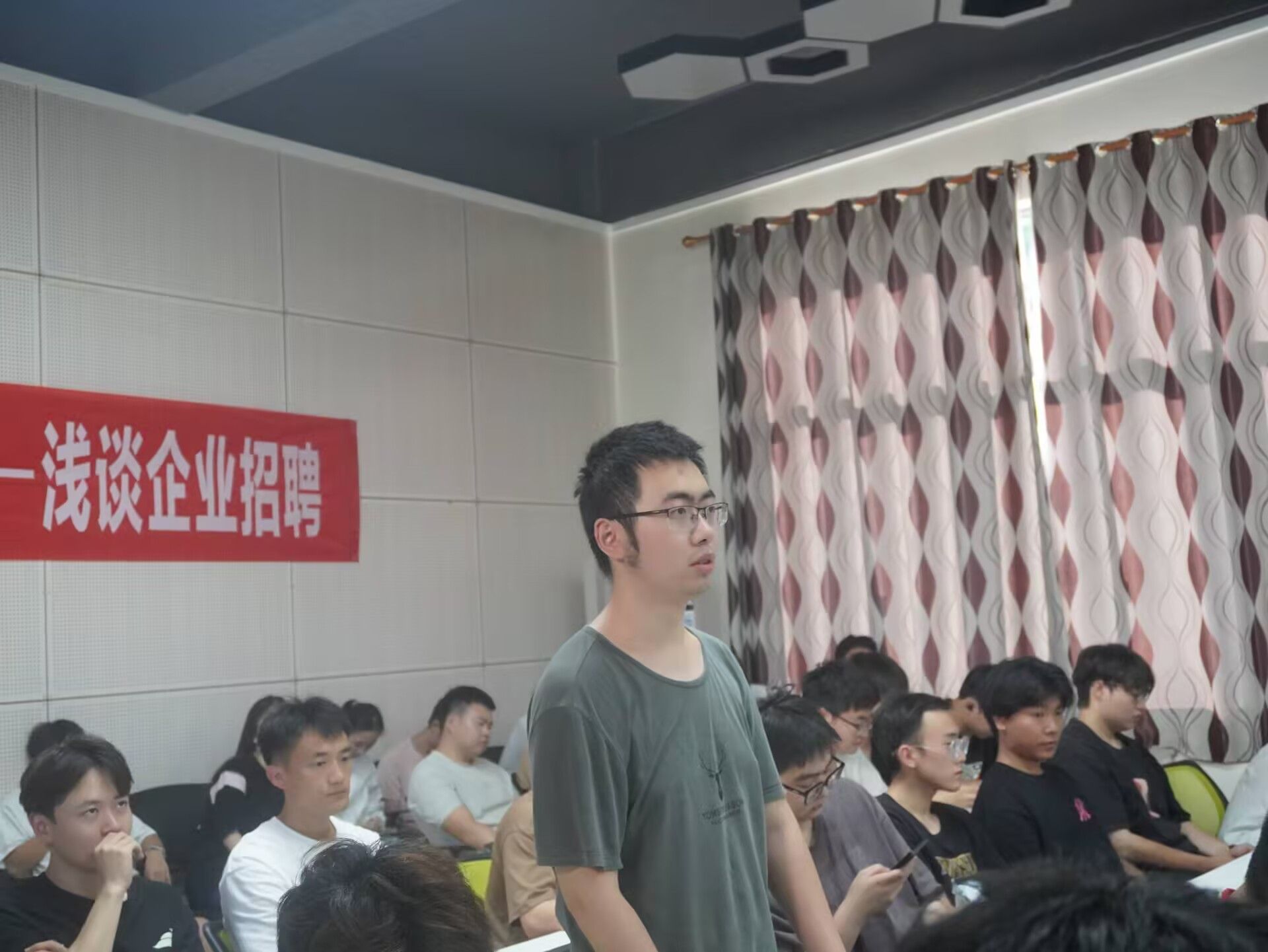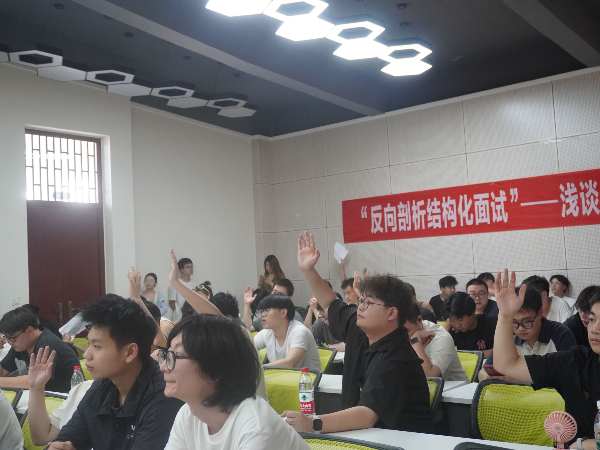 同时,文老师还提问:“如果面试官向你提问怎样对待‘加班’,你会怎样回答?”同学们纷纷给出自己的答案,但是这个问题是没有标准答案的,要想回答恰当可表明,“不排斥加班,但是不接受无意义的加班”,同时针对“加班”可反问:“公司对加班是怎么管理的?”可从面试官的回答中了解相关隐藏信息。接着,文老师还分享了一些实际案例,通过这些生动的例子,让同学们更直观地理解企业招聘中的各种情况和应对策略。他鼓励同学们在求职过程中要保持自信,展现出自己的独特优势和价值。讲座临近尾声时,文老师耐心解答了同学们提出的关于职业发展、行业前景等方面的疑问,为同学们指明了方向。