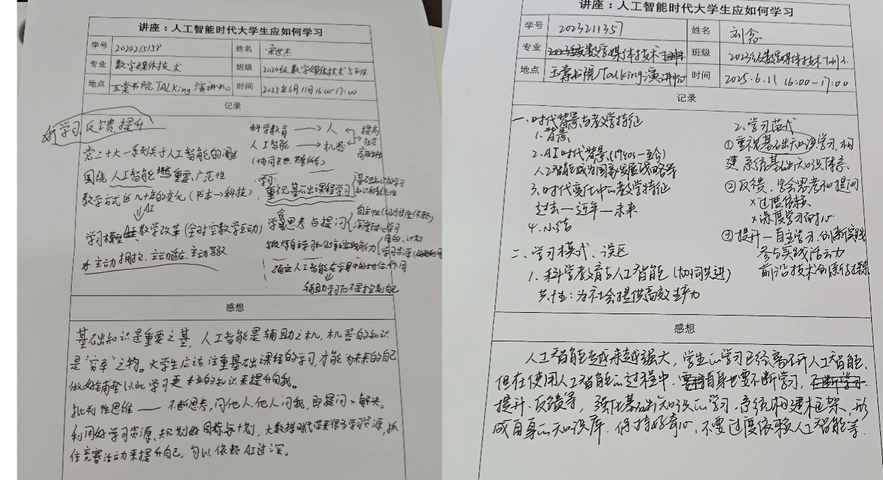 附:2023级数字媒体技术7班刘念、2024级数字媒体技术5班宋世杰同学听讲座记录和感想: