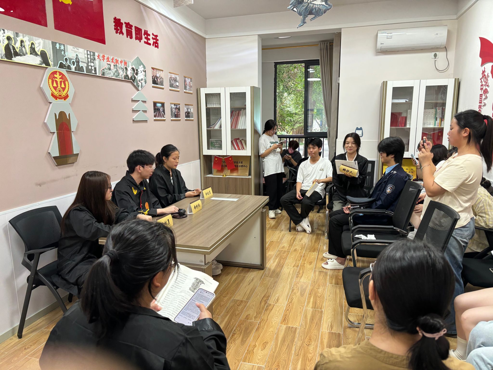 文带领同学们前往鱼城书院展开了模拟法庭形式的第二课堂活动。课程教师张睿带领课程学生在鱼城书院成功举办了一场模拟法庭活动。通过模拟真实法庭审判过程,将理论知识与实践应用结合,让同学们设身处地的去体会法律的程序与环节。