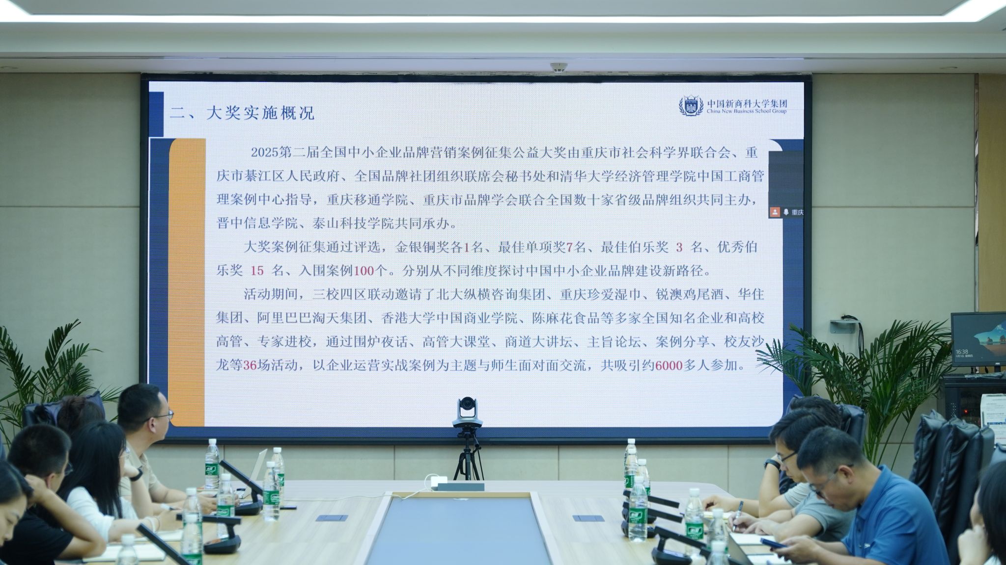 6月5日下午16:30,2025第二届全国中小企业品牌营销案例征集公益大奖复盘会在重庆移通学院綦江校区瀛山图书馆424顺利举行。重庆移通学院常务副校长王永周、校长助理张平、校长助理谢银平、商科板块相关领导,以及参与公益大奖活动筹备、执行的品宣组、物料组、后勤组、团委、艺术教育中心、后勤接待小组等相关部门负责人和老师参会,山西山东相关代表线上参会。本次会议由重庆移通学院綦江校区新商科教学部主任范保珠主持。会议议程分为复盘大奖整体情况、现场交流问题与建议、校领导指示三个环节,为下届案例大奖开展提供有力指引。