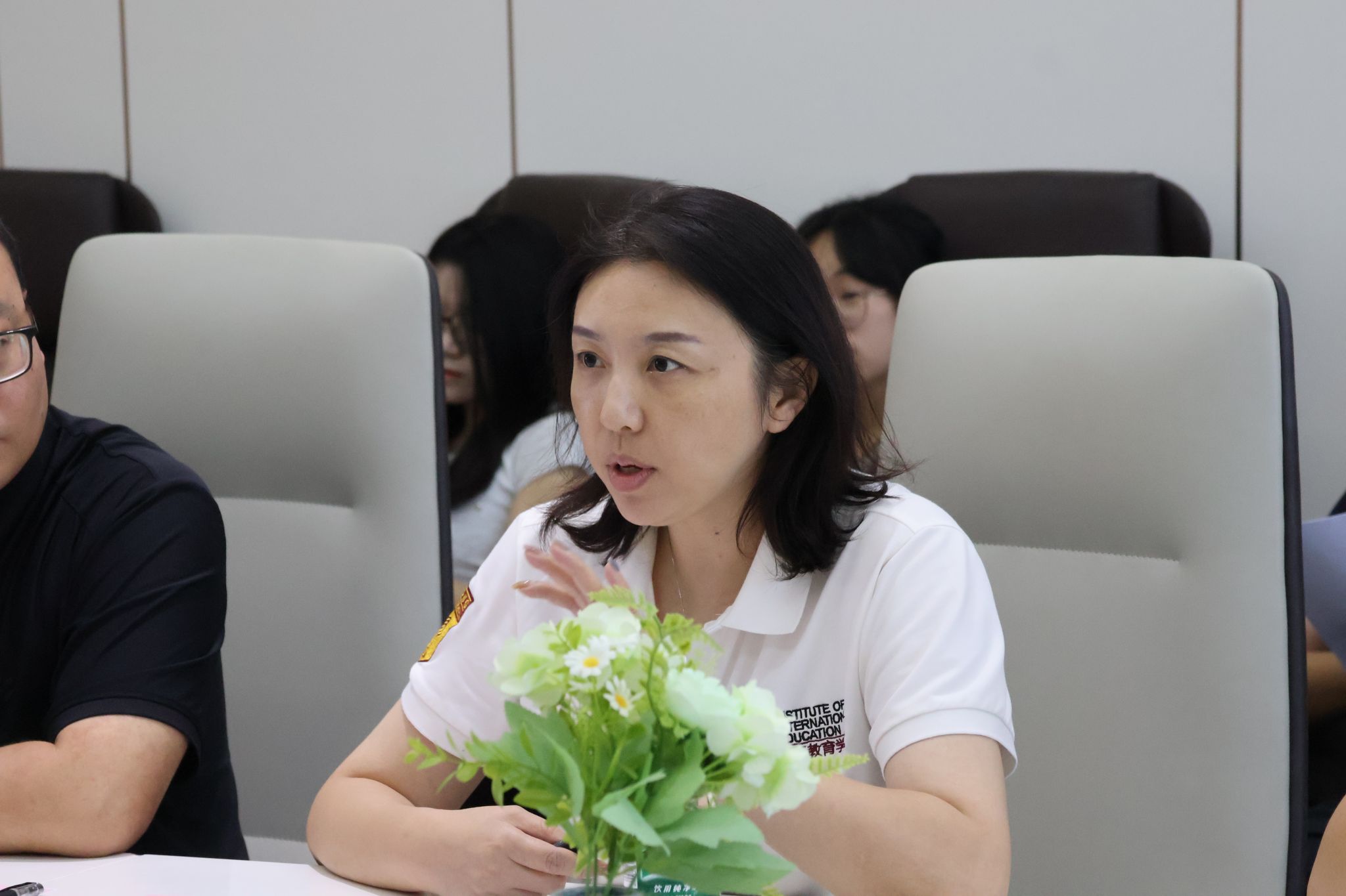接着,国际教育学院学生工作负责人杨德龙接过话题,介绍“四学三化”工作体系,“四学”既招生、教学融通、学生发展、成才反哺,“三化”以多样化、品牌化、差异化开展系列活动促进学生成长,例如红酒品鉴、国际教育周等。同时计划进一步完善学生组织建设、综合测评等问题,并借助留学生资源强化国际化氛围。