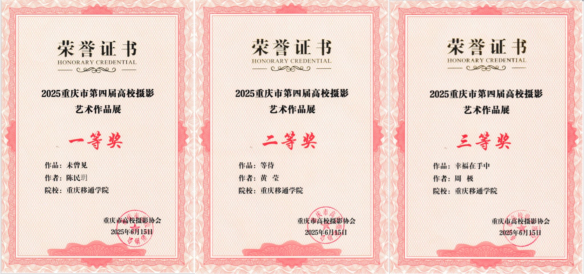 本次重庆市第四届高校摄影展,成为戏影学子展示专业素养与时代洞察力的舞台。展览共收到全市32所高校5350件投稿,精选展出400余幅佳作。戏影师生凭借深刻的主题挖掘与多元的风格表达,在激烈竞争中脱颖而出,揽获包括一、二、三等奖在内的多项奖项,其优异表现是学院长期坚持实践导向教学、强化艺术创作能力培养的丰硕成果。
