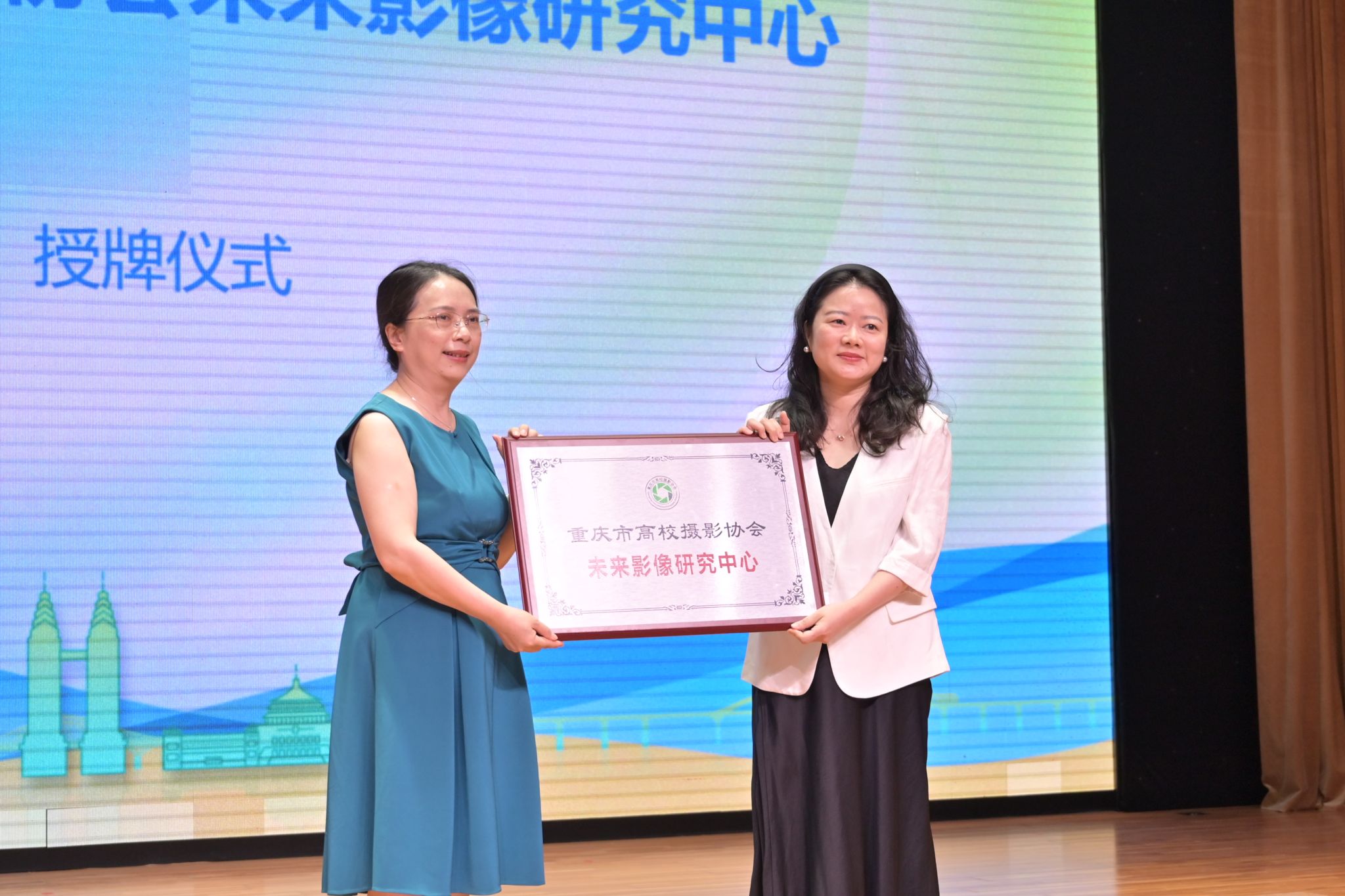 在全场瞩目下,重庆市高校摄影协会李曼会长向戏剧影视学院授牌“未来影像研究中心”。作为该中心的共建方与主阵地,王芳院长在致辞中描绘了中心的使命蓝图:中心将深度聚焦人工智能等前沿技术与影像艺术的融合创新,致力于打造艺术与科技深度融合的实验平台,拓展影像表达边界。王芳院长强调,面对影像行业数字化变革浪潮,中心将紧密对接行业前沿,依托虚拟制片、数字影像等先进技术资源,深度融入日常教学,打破传统课堂时空限制,推动教学生产模式革新。