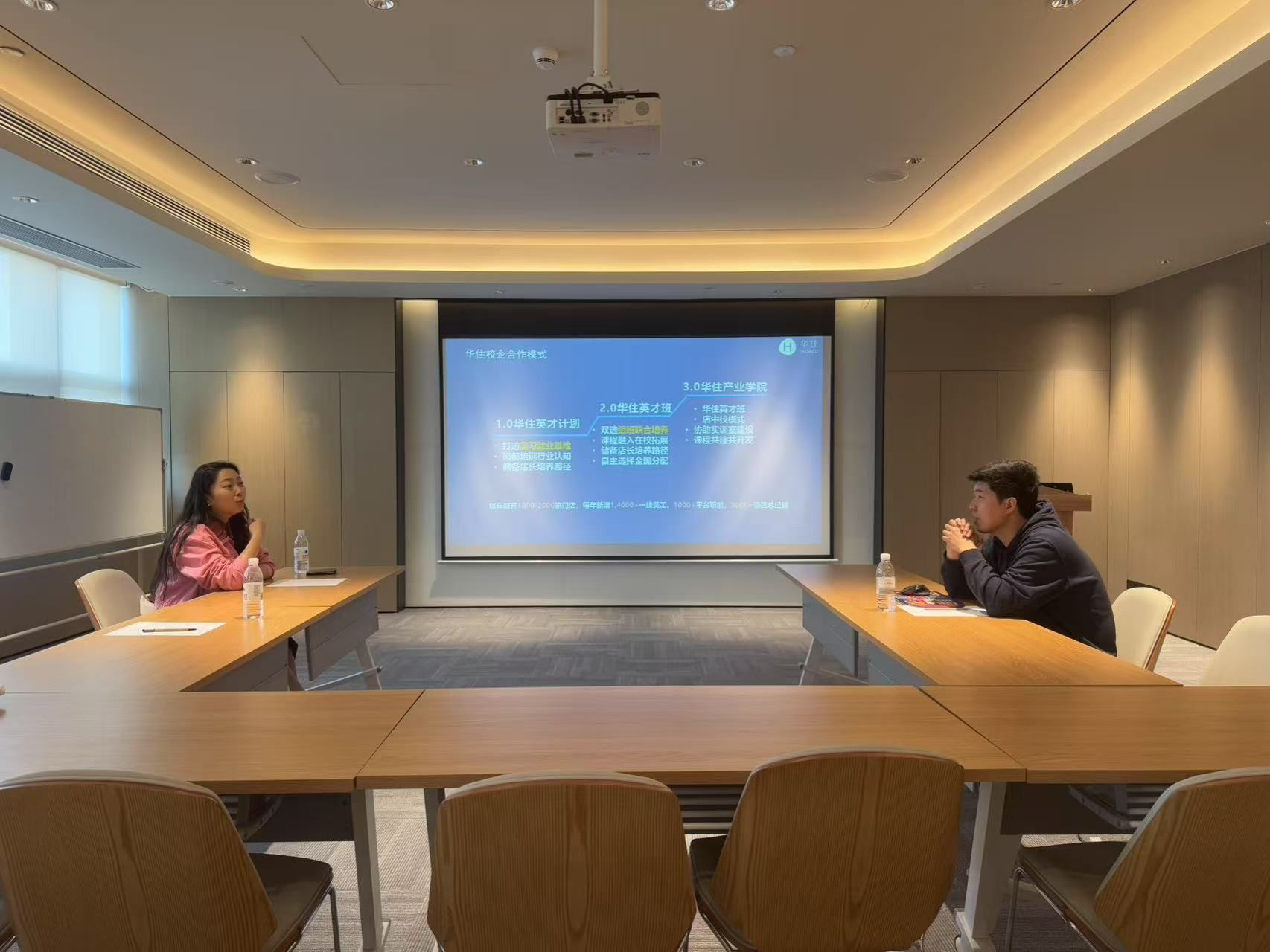 华住集团校企区域负责人刘浩老师对陶羽老师的到来表示诚挚的欢迎。本次参访既是酒商学院副院长张云潇老师与刘浩老师在重庆初次座谈后相约到华住集团参访的兑现,也是酒商学院与华住集团在今年5月签约仪式上深度合作的意向的落地。刘浩老师就华住集团的发展现状、人才培养策略、9月的实习生引进计划进行了详细介绍,尤其是针对9月份实习生涉及的工作区域、工作工作岗位、工作待遇进一步予以明确,确保了酒商学院人才选拔的精准性,也为酒商学院新一年度的学生培养奠定了坚实的企业基础。