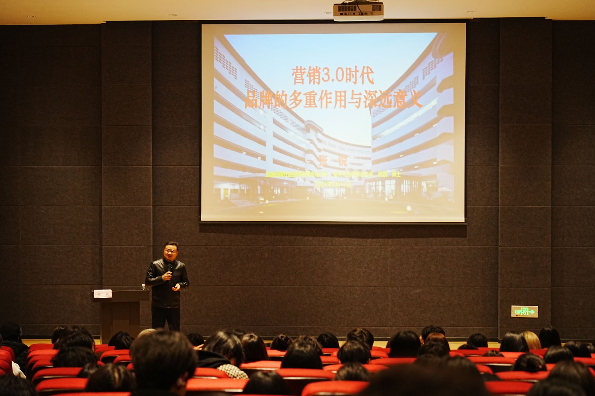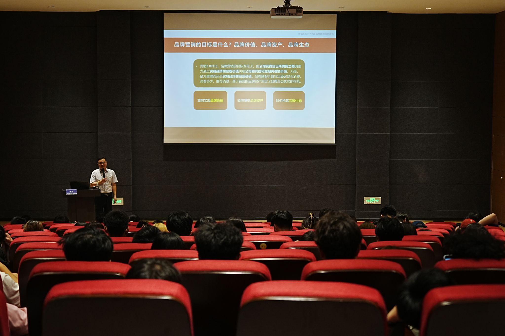第二期讲座是2025年4月23日晚19:00在六度空间学术报告厅举行,讲座主题是营销3.0时代:品牌的形态特征与建设模式。张锐老师提到:品牌是无处不在的,它会通过符号的形态呈现。就拿校园而言,不管是早餐包装,社交平台的图标,还是校园快递柜标识灯等生活场景都有品牌的身影出现。随后,张锐老师提出品牌重要的原因究竟是什么。品牌的消费满足着人们对美好生活的需求,是企业的竞争优势所在,在功能、审美、情绪、经济等价值上都具有巨大作用和意义。张锐老师讲到品牌的存在分为从资源到资产再到资本最后到资金这几个递进式关系,并将其比作成大象,形象而生动。