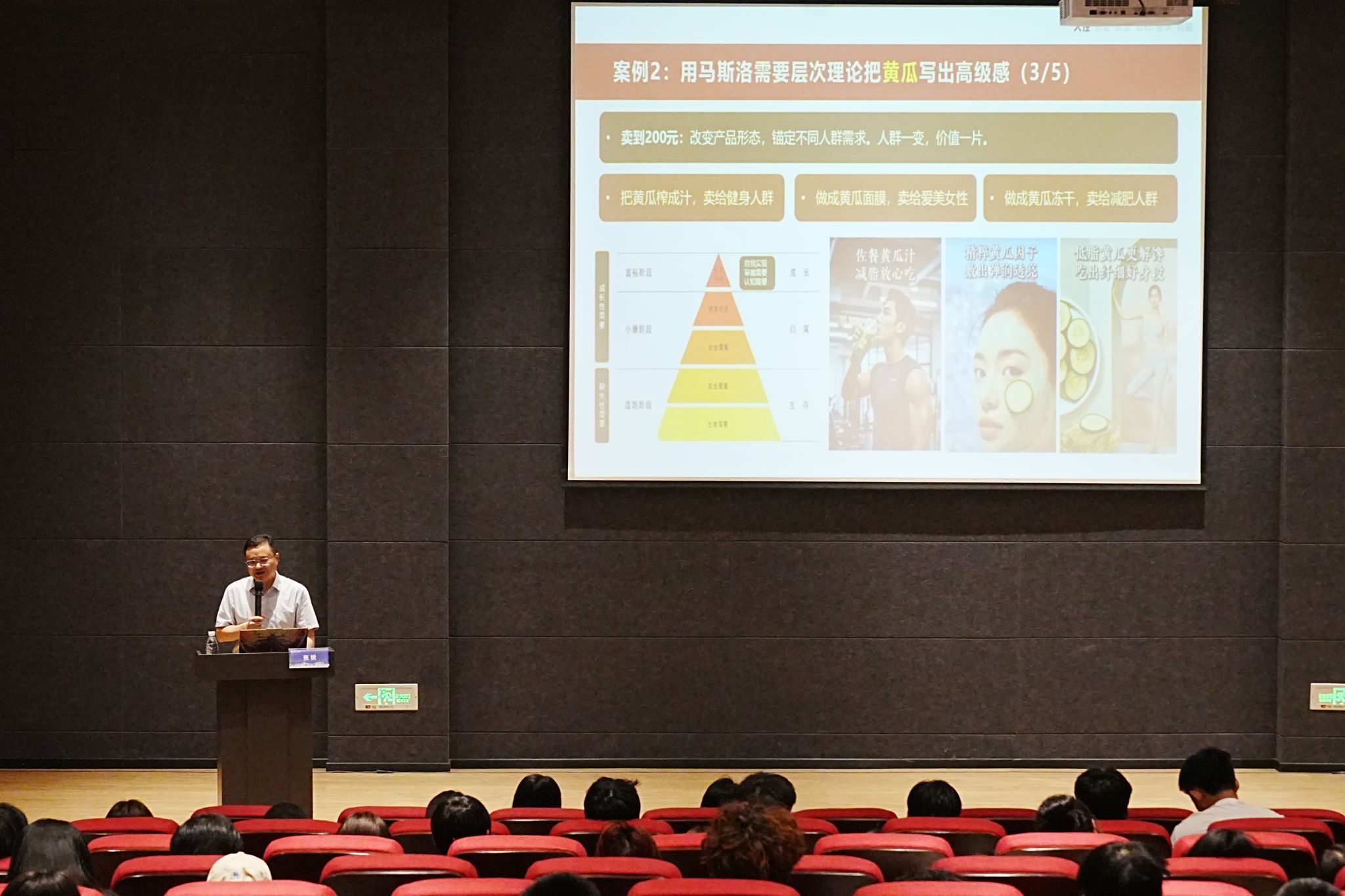 第三期讲座是2025年5月21日下午15:00在六度空间学术报告厅举行,讲座主题是营销3.0时代:品牌价值实现的逻辑与案例。谈到品牌利益,张锐老师将其细致地分为社交性利益、规范性利益和角色性利益。张锐老师以沃尔沃汽车为例,说明品牌不仅提供安全性能这一核心利益,还涵盖良好性能、优质设计、环保关注等全方位利益,打造“唯有爱与安全不可辜负”的价值主张。此外,还列举潘婷“健康亮泽”、舒肤佳“有效去除细菌、保持家人健康”等案例,展示品牌功能性利益的精准传递。还通过胖东来对顾客的贴心服务,如质量监测管控、不满意无条件退货等,展现品牌如何从细节处满足主体需要,提供切实品牌利益,提升品牌价值。在“品牌属性”方面,张锐老师强调品牌属性是品牌价值得以生成的重要条件,与主体需要、品牌利益紧密相连。并以耐克为例。耐克的品牌核心属性包括产品推动力聚焦运动和健康,使用者类型为顶尖运动员及健身爱好者等。